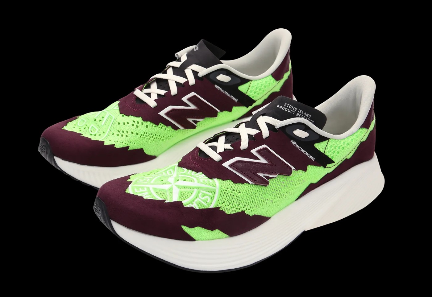 延续了 RC ELITE V2 竞速跑鞋造型,速度感十足,也符合 Stone Island 户外机能的调性。