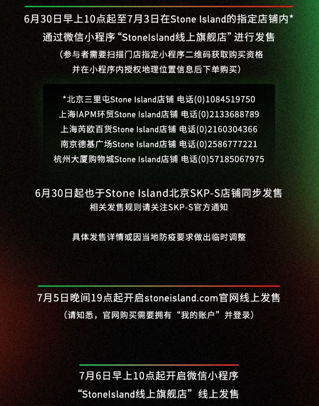 两款全新配色的 Stone Island x New Balance RC ELITE V2 将于 6 月 30 日起限时登陆 Stone Island 指定线下门店,北京 SKP-S 届时也会同步上架抽签发售,7 月 5 日和 6 日分别开启 Stone Island 官网和小程序购买渠道,发售价格可以参考去年的首发配色定价¥1899 元。