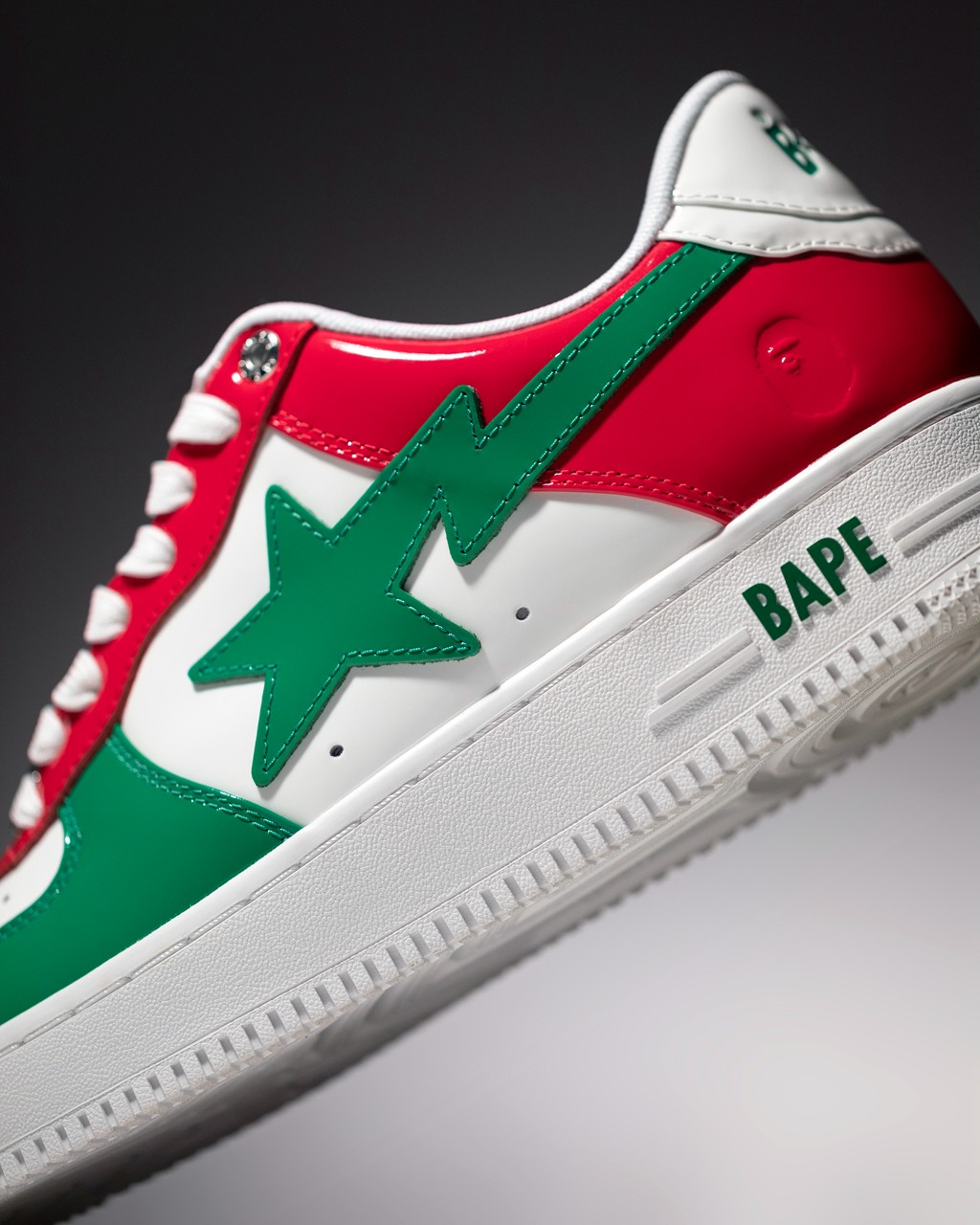 看到这双 BAPE STA™ 的第一眼,相信大部分玩家都会被它亮眼的配色所吸引,称之为「意大利」配色似乎更为贴切。