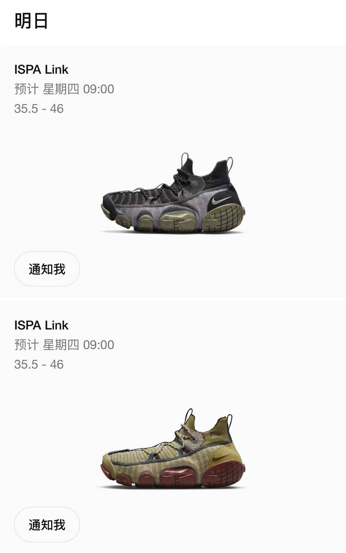 最后,Nike 全新的「轮胎鞋」ISPA Link 将在明早 9 点在国区 SNKRS 开启 LEO 抽签,喜欢的朋友明早不要睡过哦!