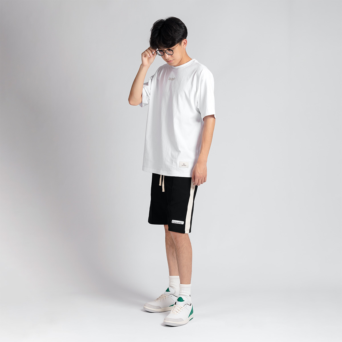 耐脏又耐看的黑色,结合米白侧缝,带来夏日街头的潮流气氛。