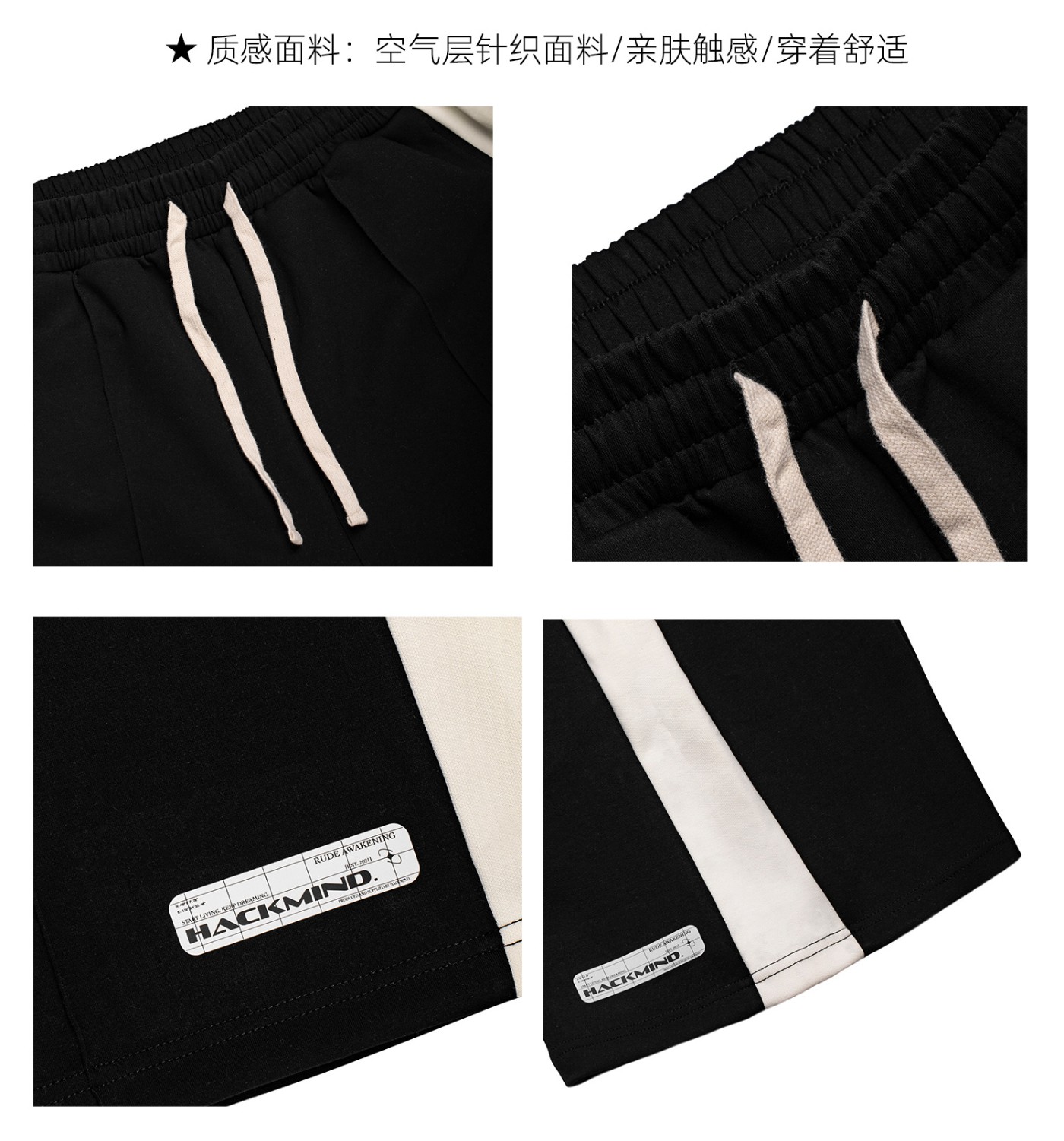 HACKMIND 空气层面料黑白五分短裤