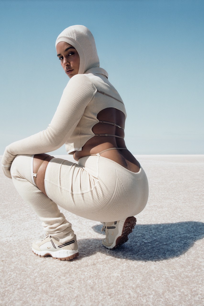 Jacquemus x Nike 联名系列服饰同样将极简美学发挥到极致,涵盖卫衣、裙装、裤装、运动内衣等。