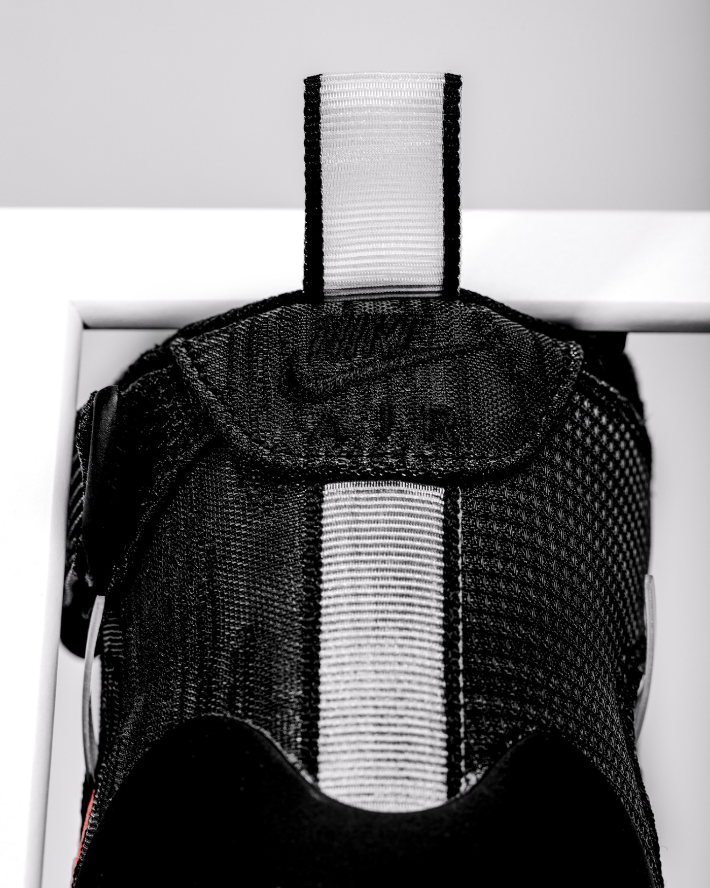 与鞋身主色同色的刺绣 Nike 标志,搭配上蝉翼材质后跟鞋提,呼应鞋面材质。