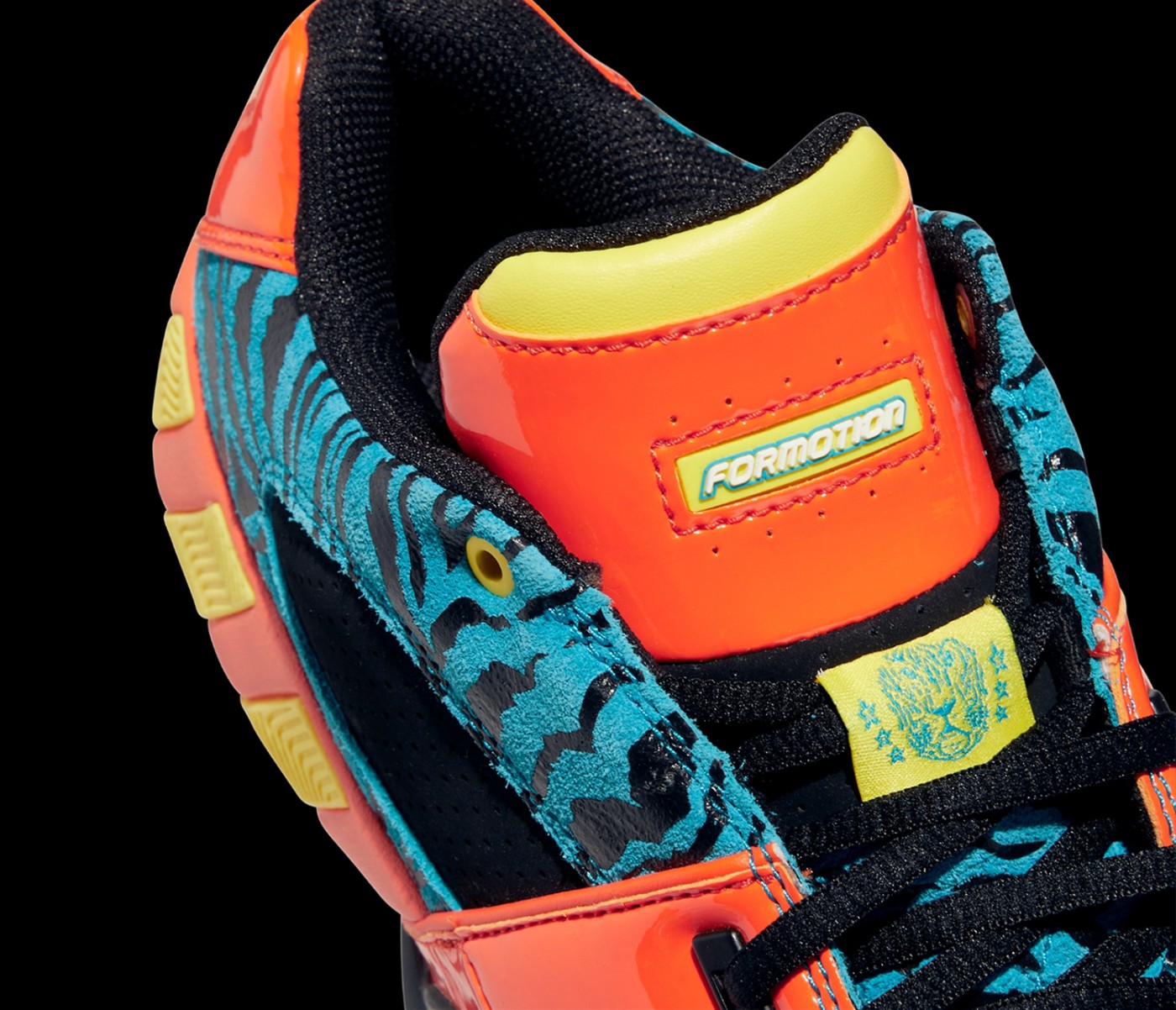在鞋舌部分带有虎头图案,展现了虎纹设计的灵感来源。