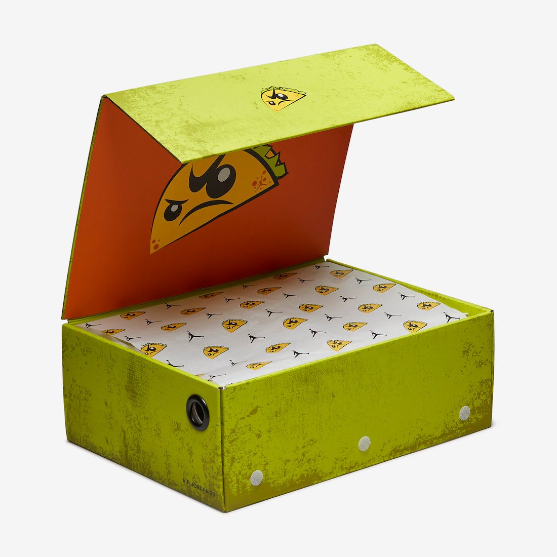 鞋垫、鞋盒也采用特殊规格,带有 Taco 形象与字样与鞋身呼应。