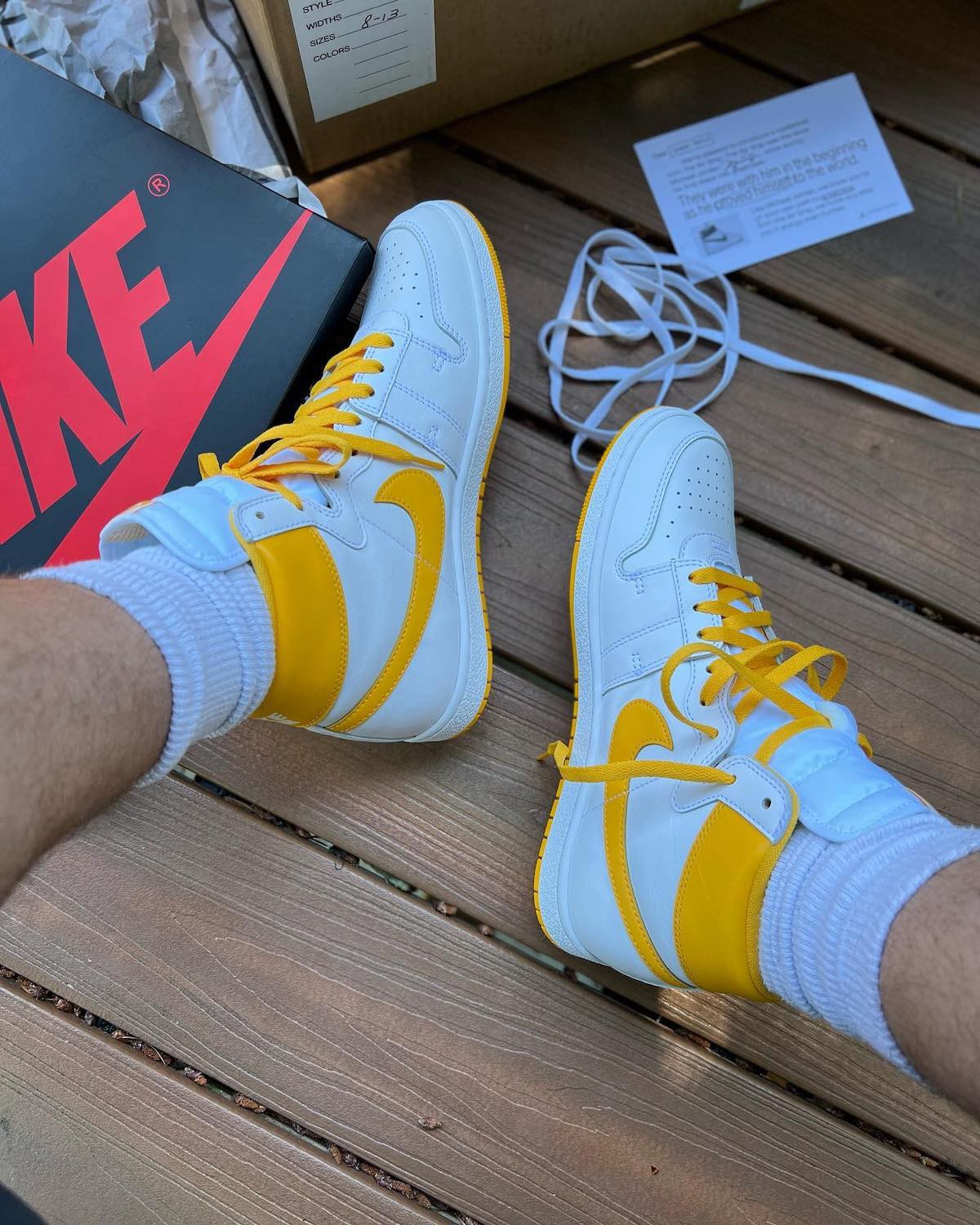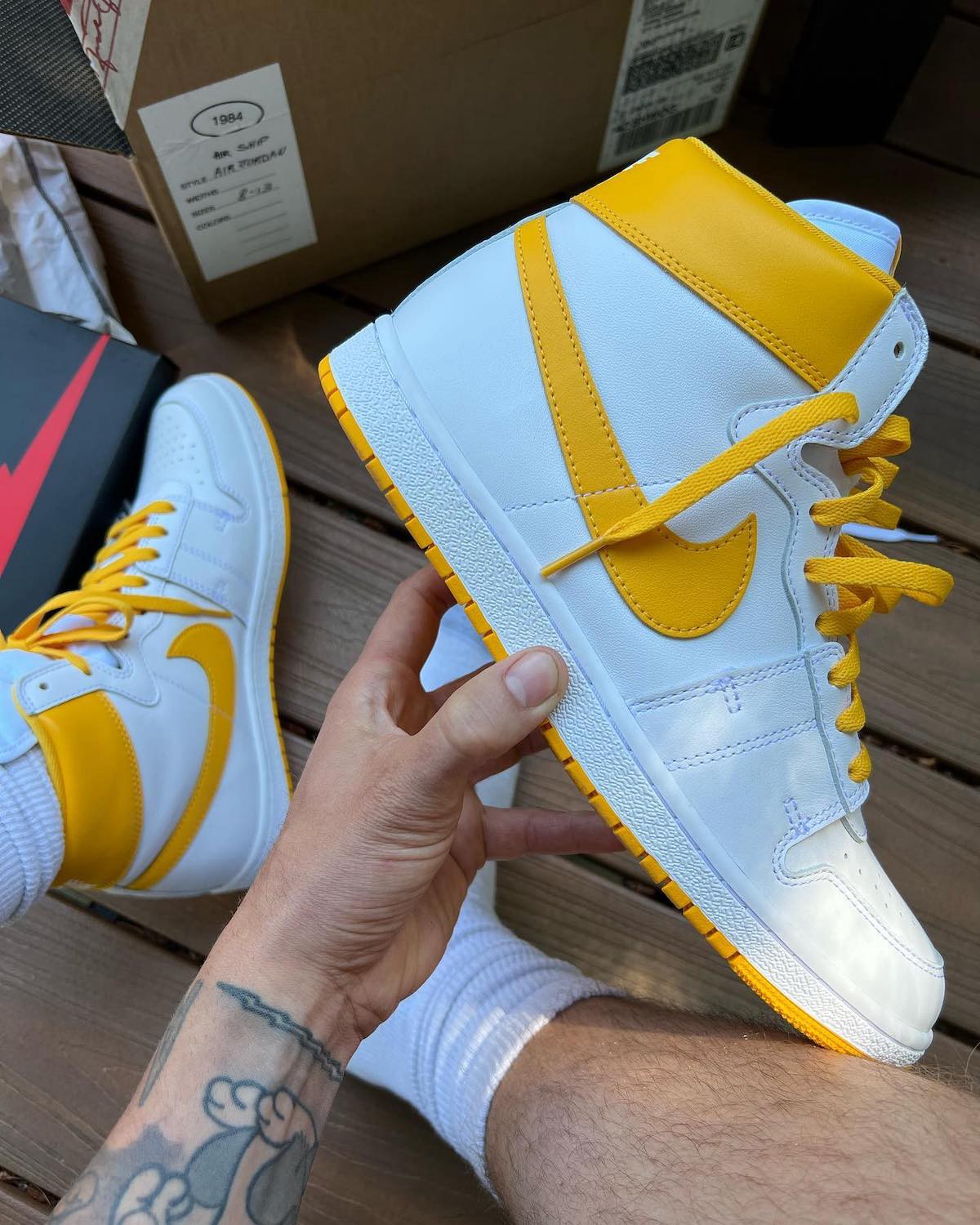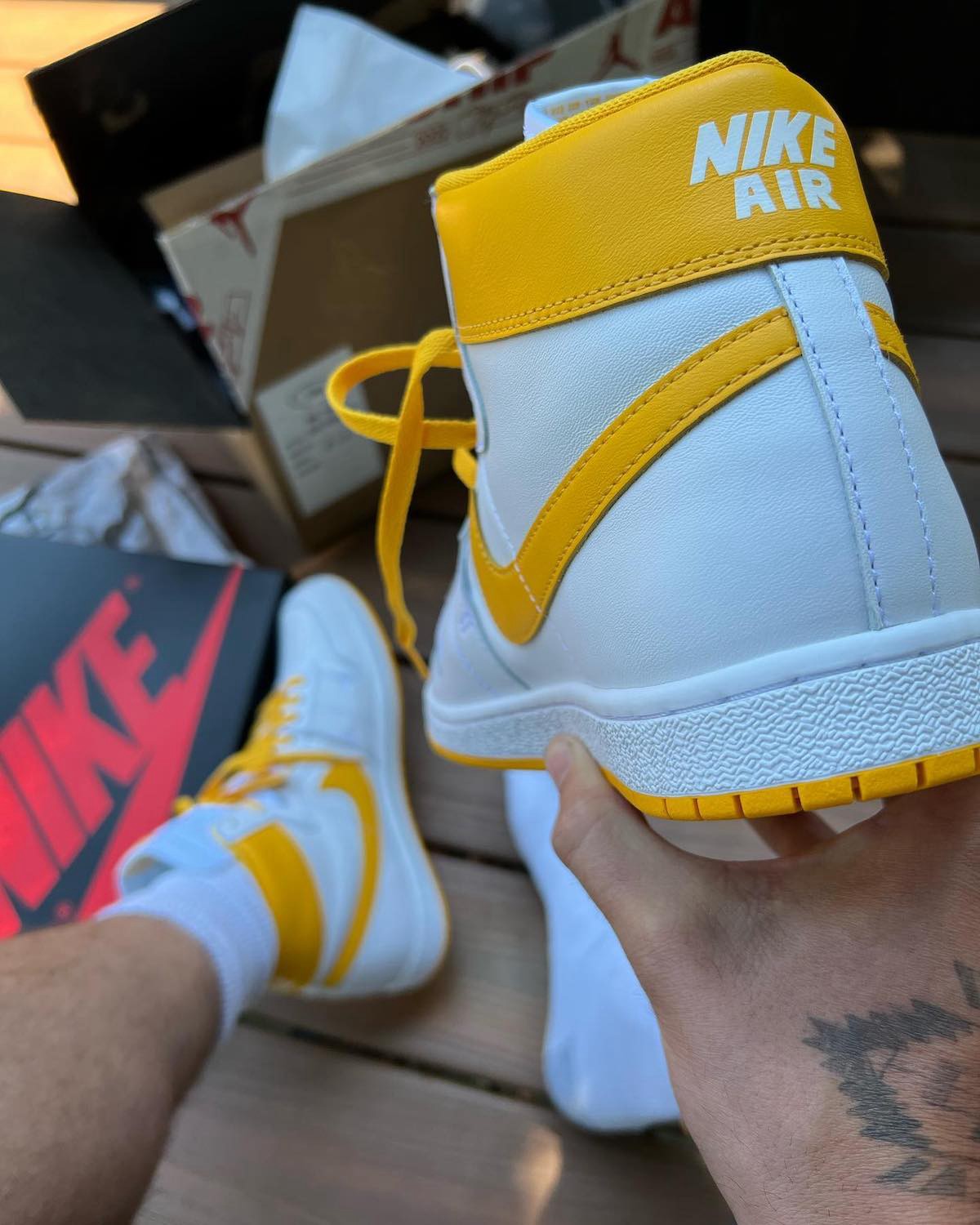 近日,外媒率先曝光了白黄配色 Nike Air Ship SP “University Gold” 的最新实物图。