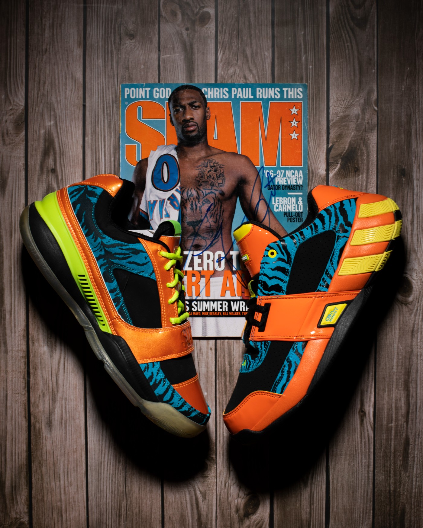 小编也特地找来了当年的元年鞋款,以及阿里纳斯亲笔签名杂志一同拍摄。