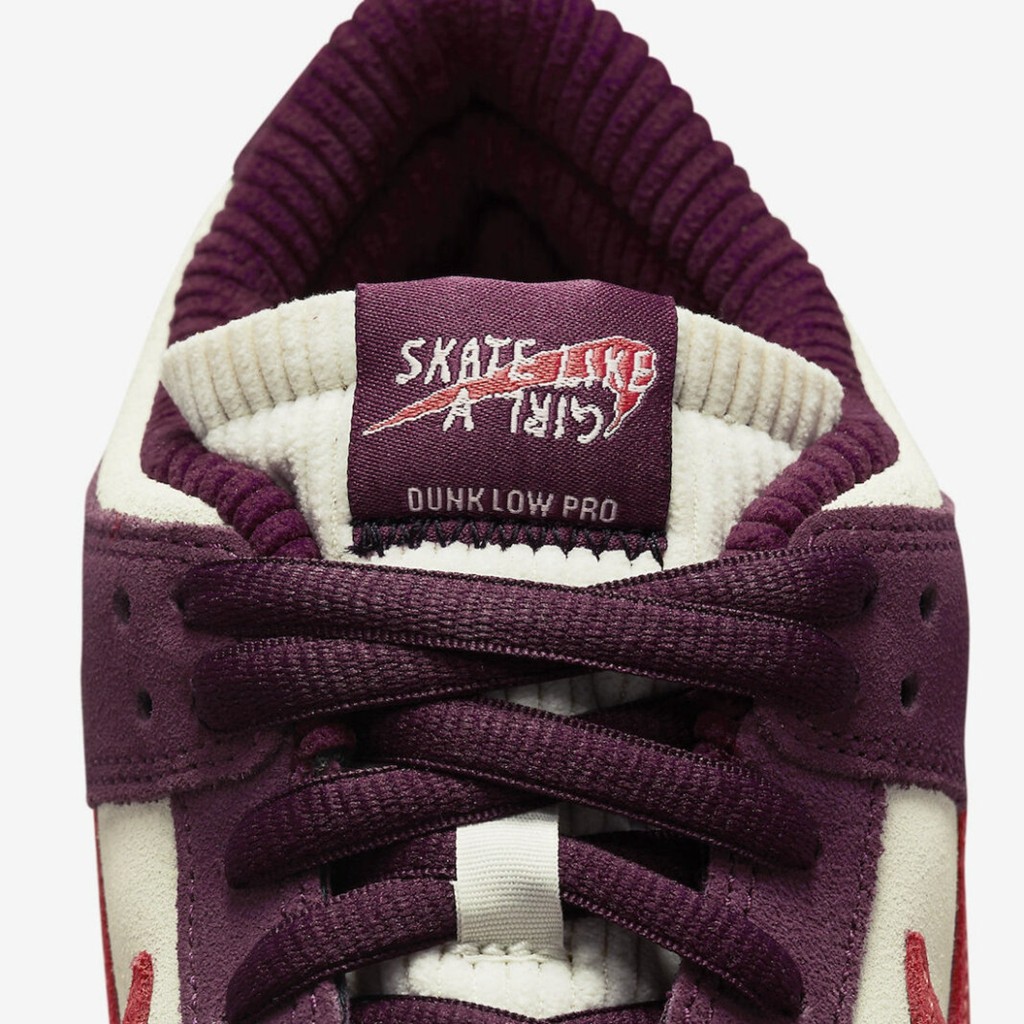 值得一提的是,鞋舌织唛将原本的 Nike Swoosh 进行反转,与 Skate Like a Girl 字样搭配在一起,玩味十足。