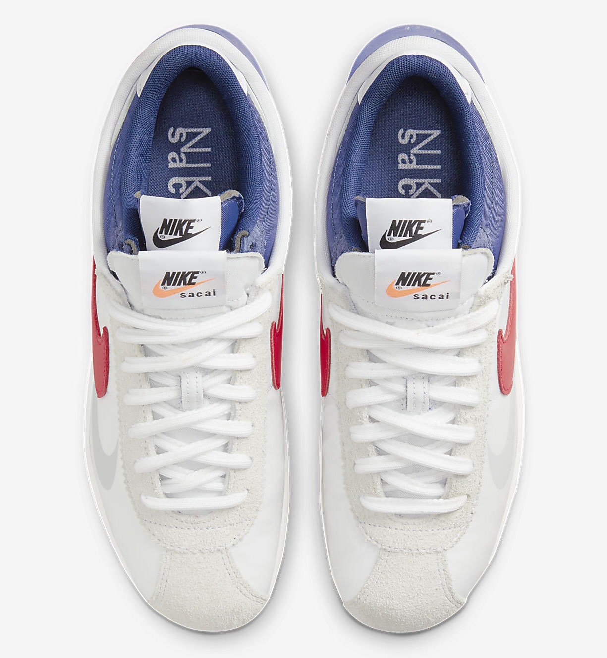 设计手法上延续 sacai 一贯的解构手法,鞋面部分以经典 Cortez 为主,侧身带有标志性叠加 Swoosh Logo。
