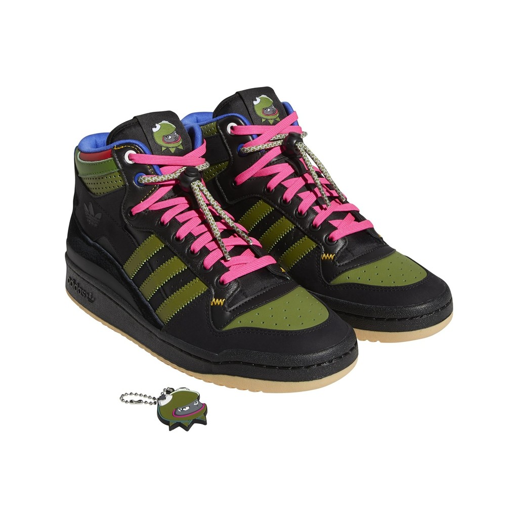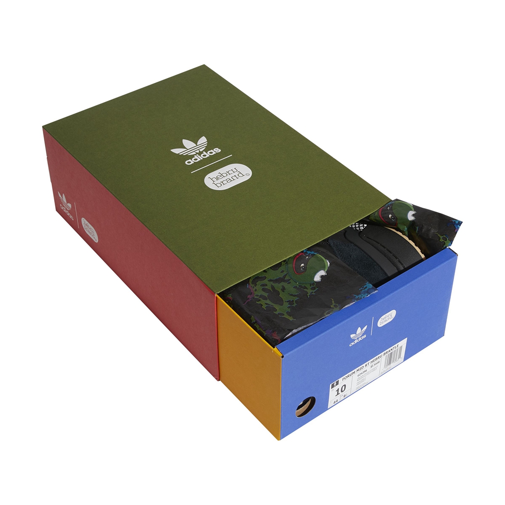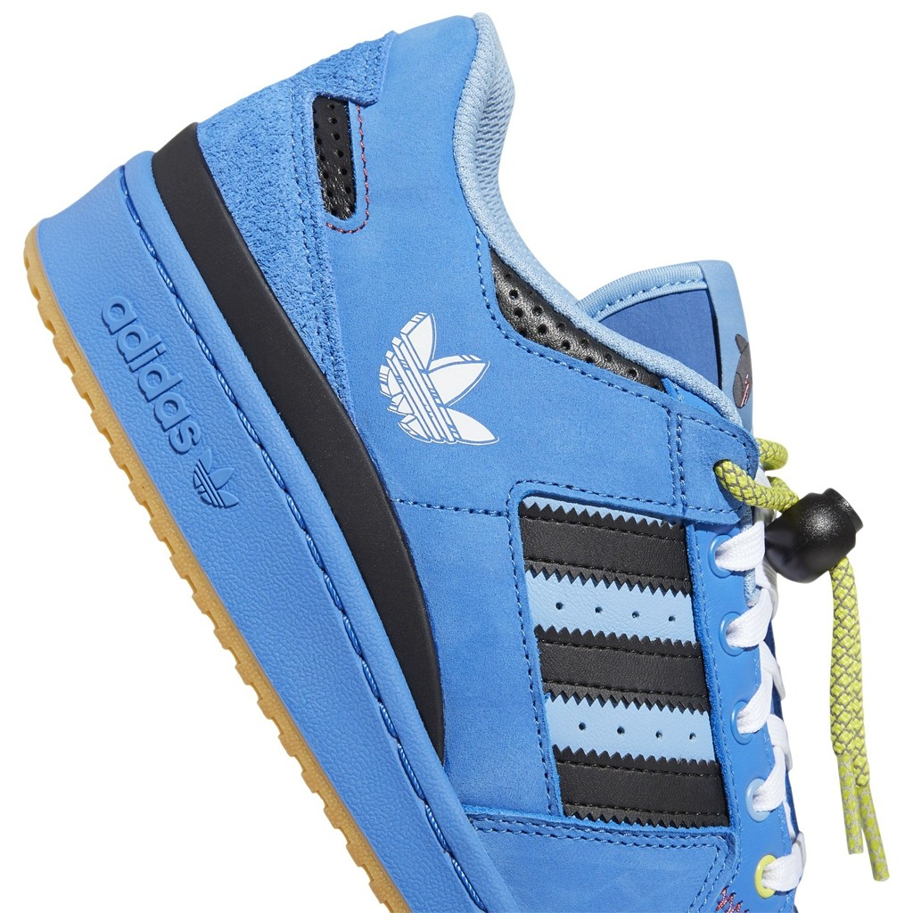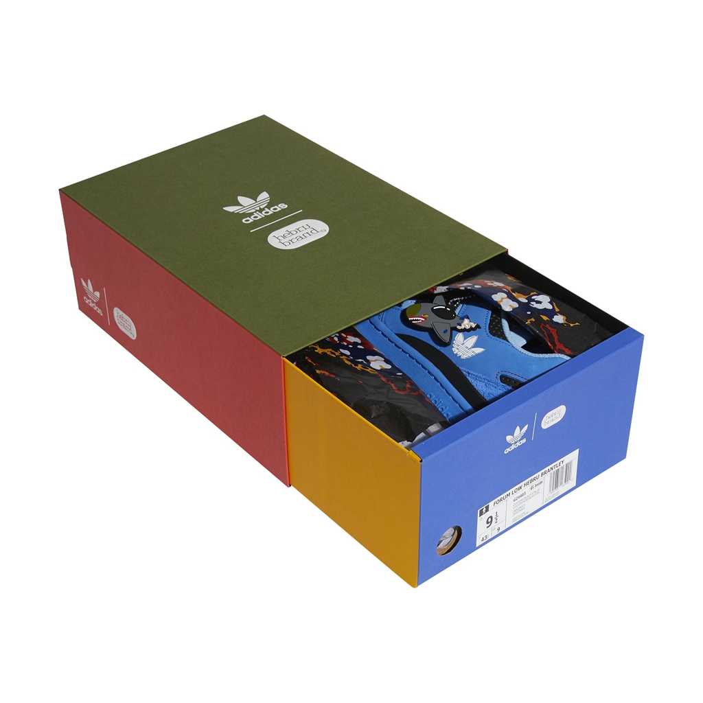 其中 Forum Low 的鞋面以 Hebru Brantley 标志性的鲜艳色调呈现,呈现涂鸦的质感。