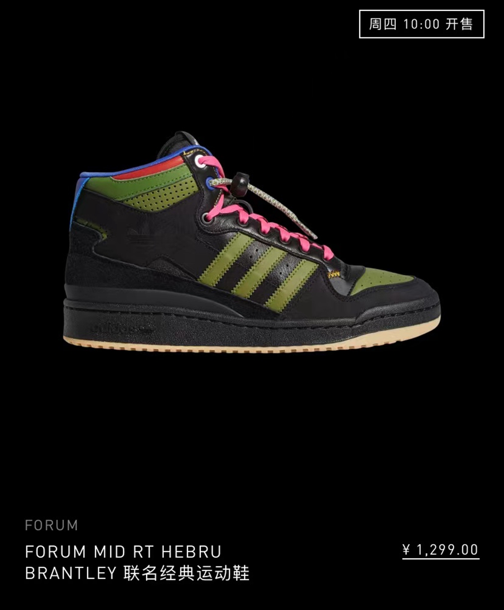 根据官方说法,adidas Originals x Hebru Brantley 合作系列 Forum High 的售价为 ¥1299 元,Forum Low 的售价为 ¥1199 元。
