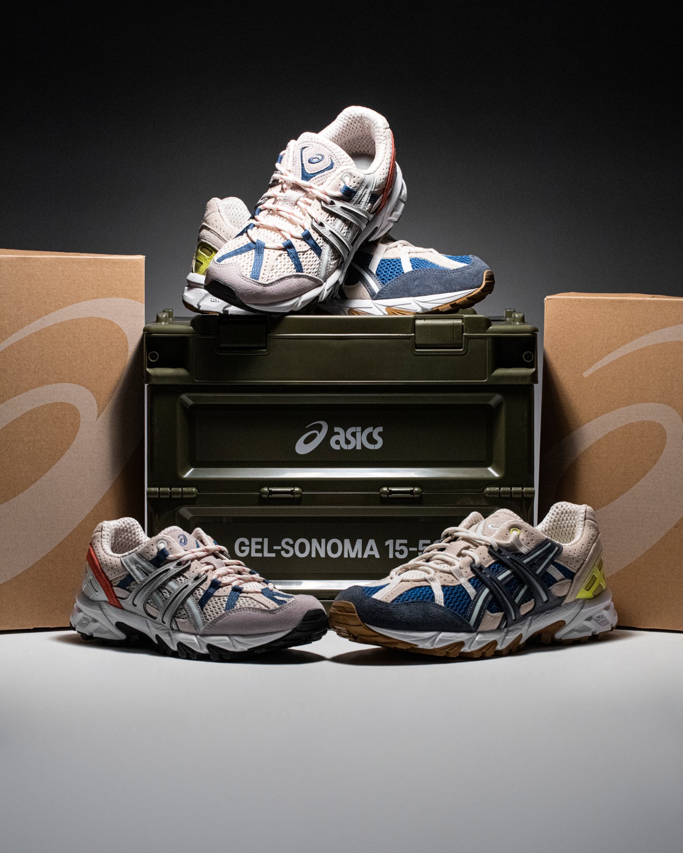 这款 GEL-SONOMA 15-50 鞋型,鞋面来自 ASICS 专为户外竞技跑步设计的 15-50 经典越野竞速鞋,并融合前两代 GEL-SONOMA 越野鞋设计。