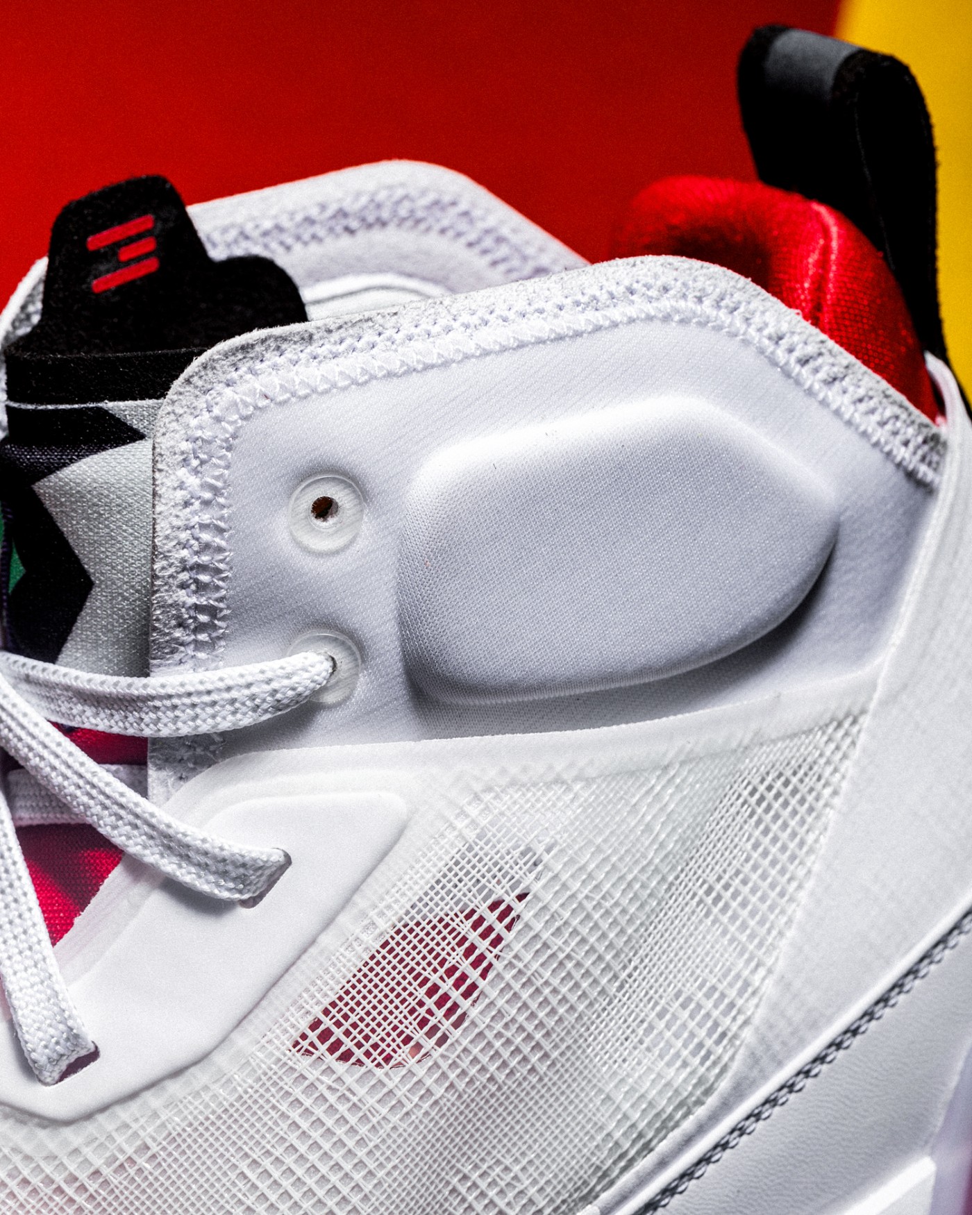 可见 Air Jordan 37 通过全新鞋面科技,实现了当年 Huarache 的构想。在满足支撑包裹的同时,带来极致的轻量和透气。