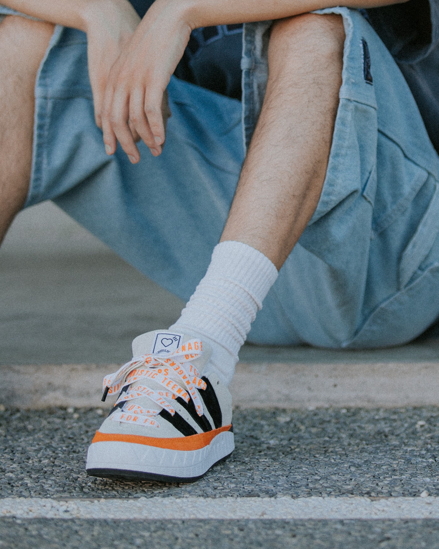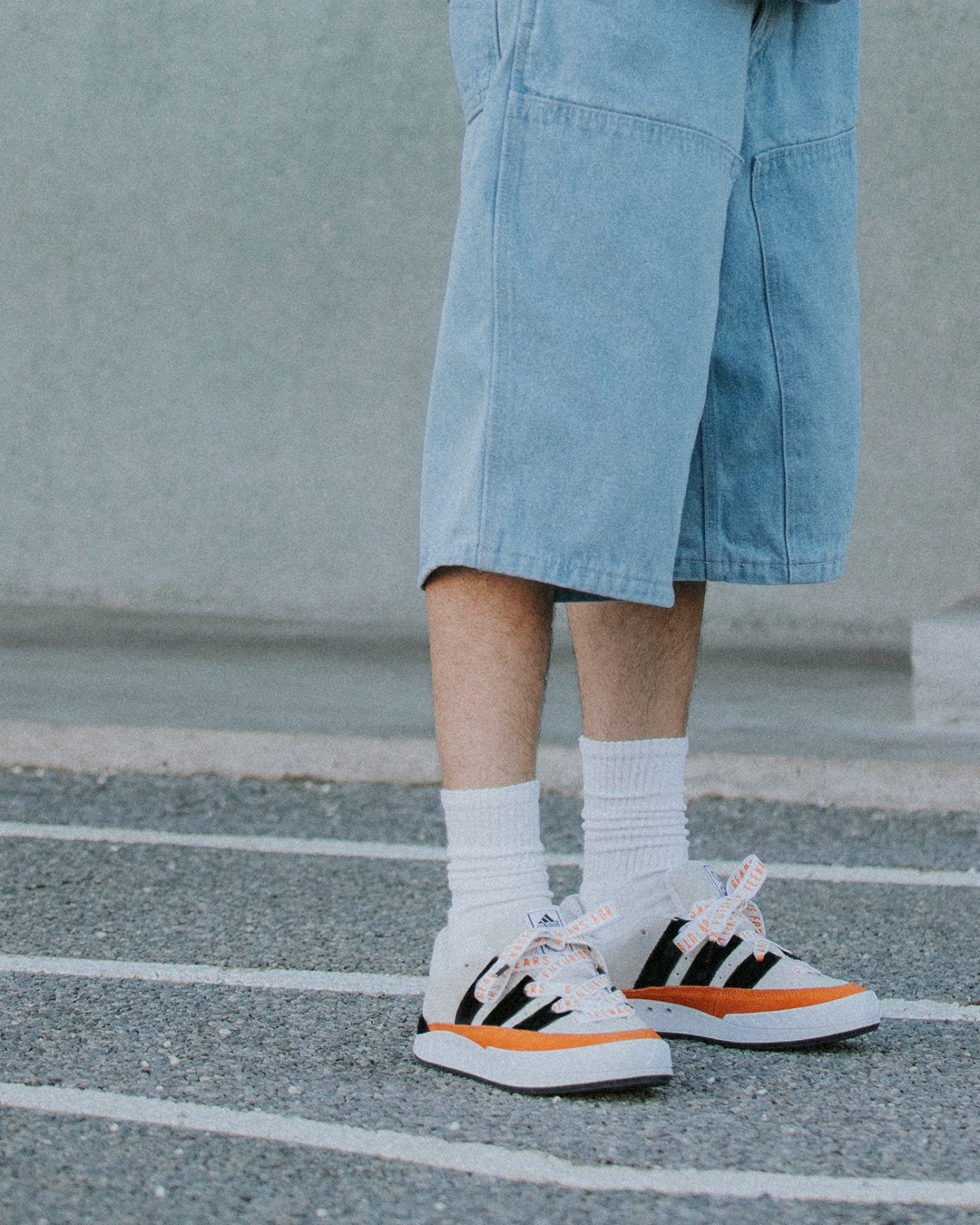 搭配方面也不用过分操心,选择一条牛仔短裤和同色系 TEE,就能将整双鞋的细节完整呈现。