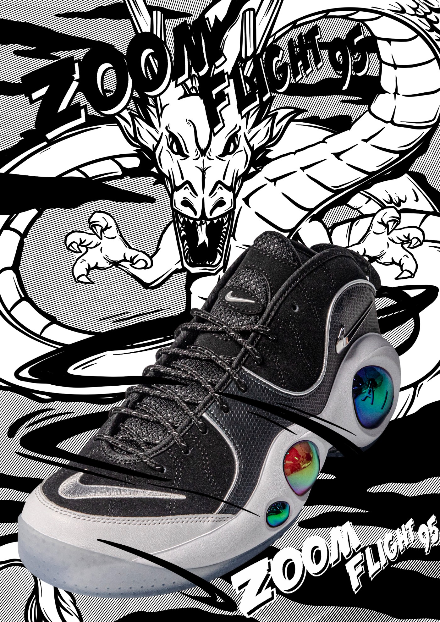 第一双选用今年回归的经典战靴 Air Zoom Flight 95 为蓝本打造。