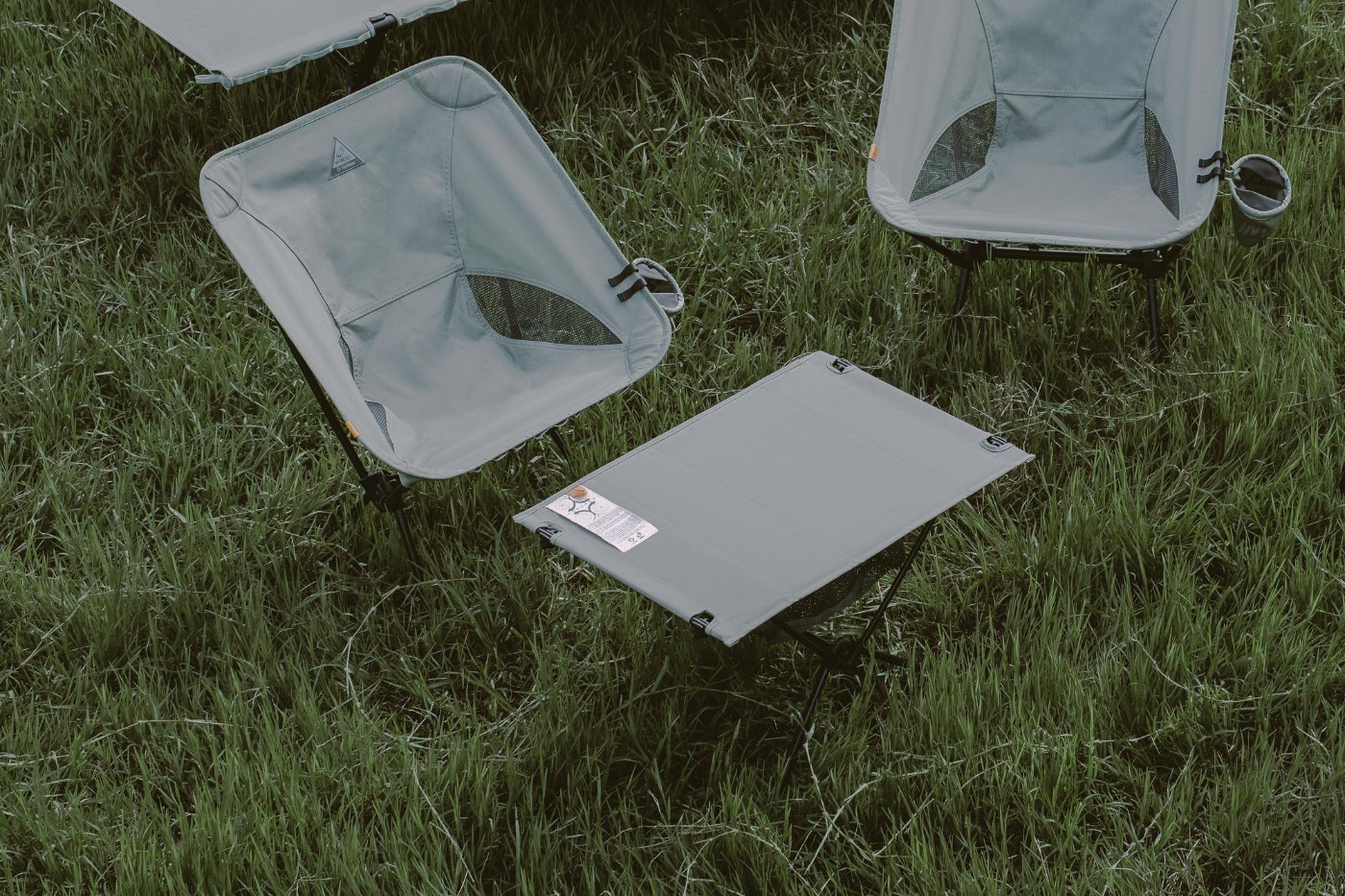 支架皆采用 Helinox 品牌独家材料 “DAC 铝合金”,包含轻量战术椅、战术行军床、轻量战术桌以及外挂储物盒与杯架两款配件。