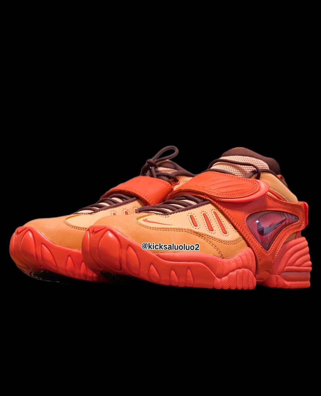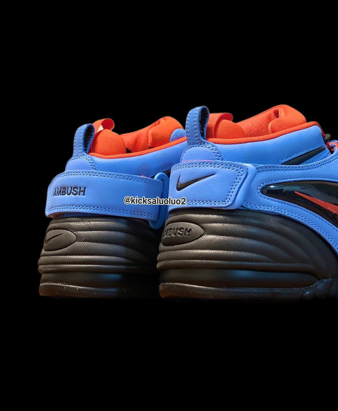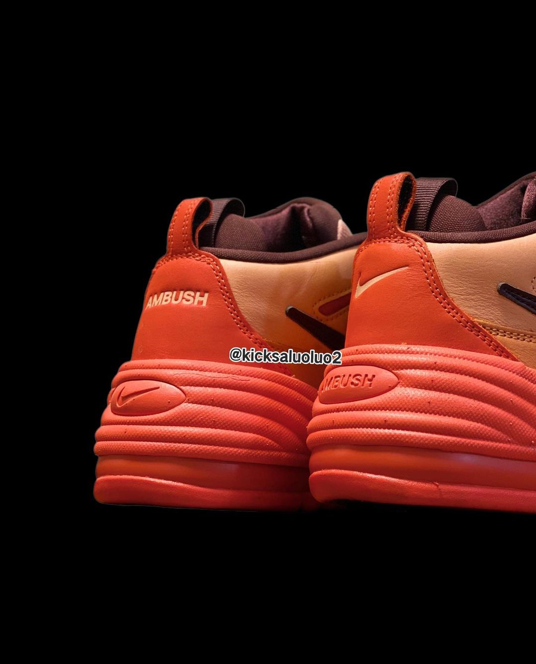 其中一双通体采用橘红色,吸睛、亮眼的配色选择的确很符合 AMBUSH 之前的风格。