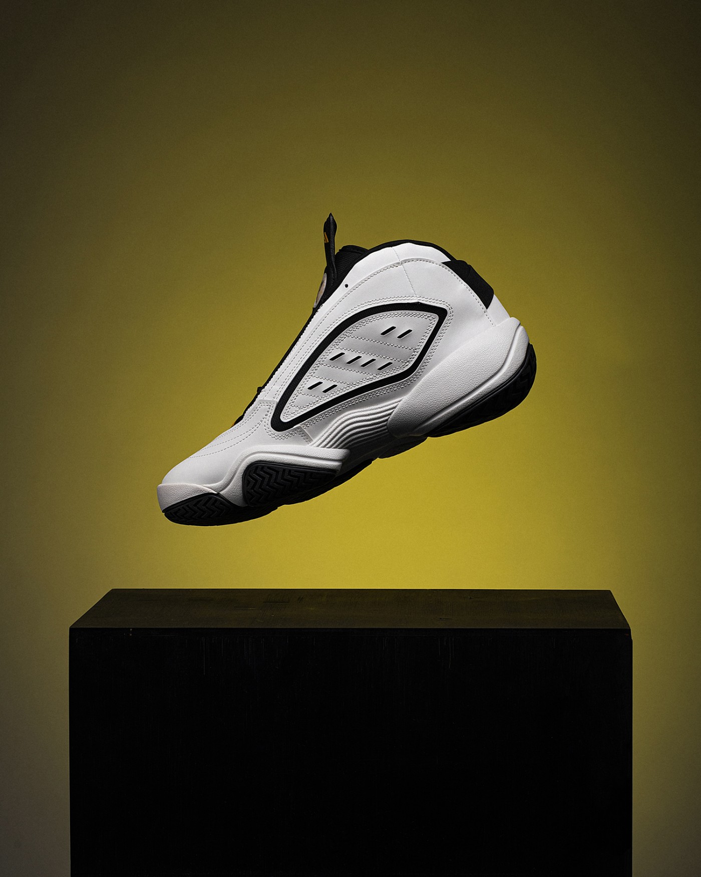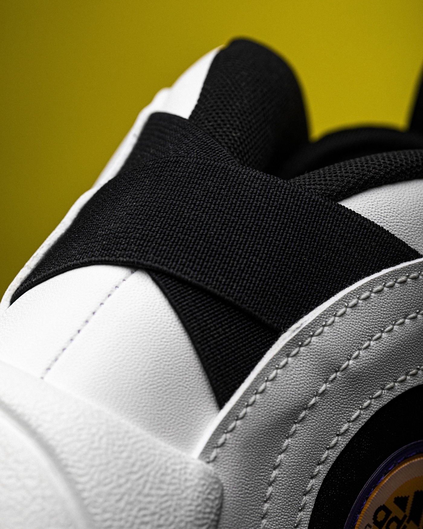 相较于扣篮大赛醒目的紫色版本,小编更喜爱线条明朗的这款元年白黑配色。