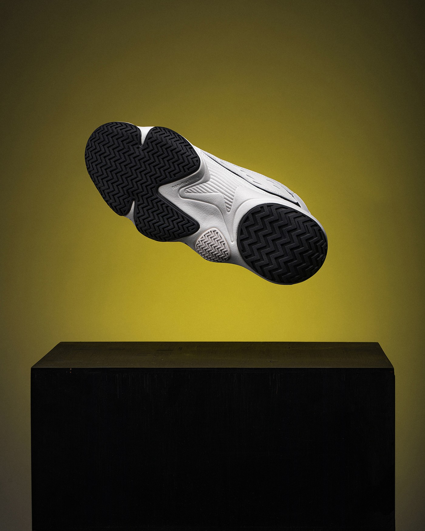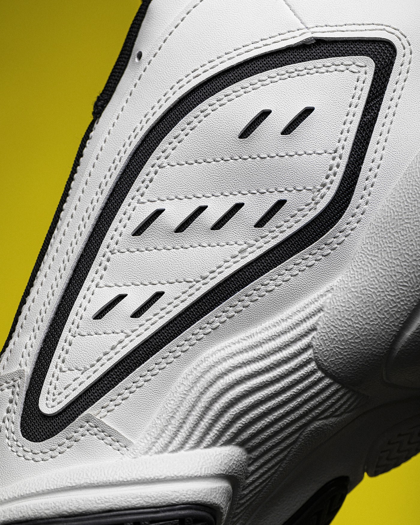 目的是为了提供更多支撑的同时,让双脚更加贴地稳定,算是当年比较超前的理念。