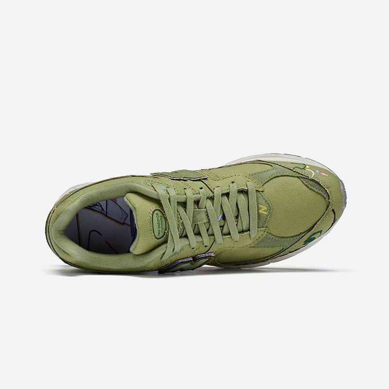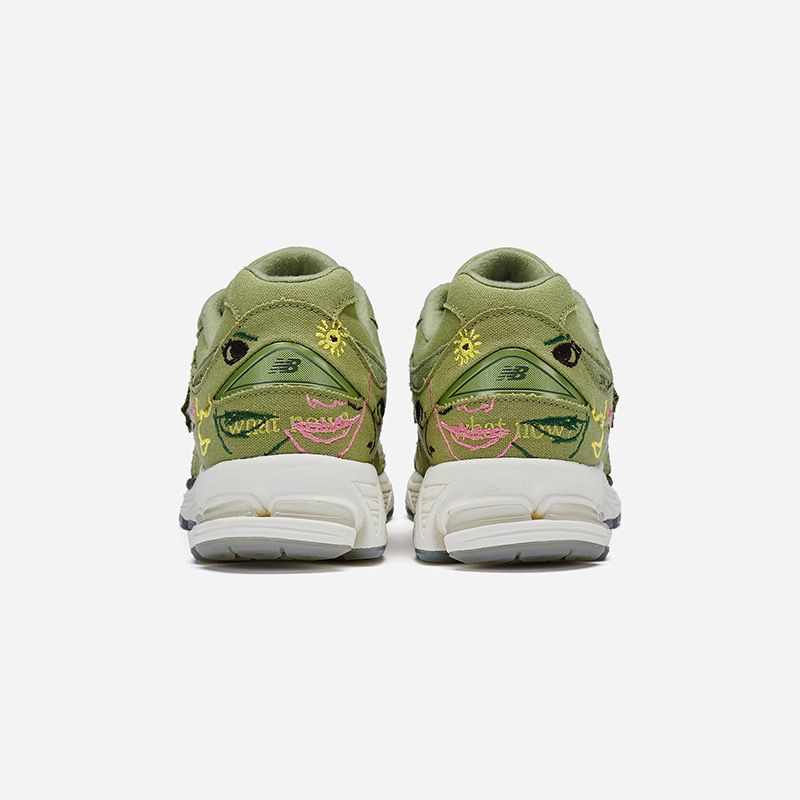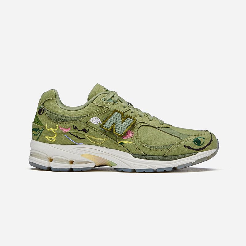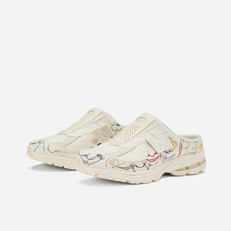 此外,还有一双 Mule 版本的 2002R, 延续 Bryant Giles 的涂鸦设计风格,不过鞋面由刺绣改为印花呈现。