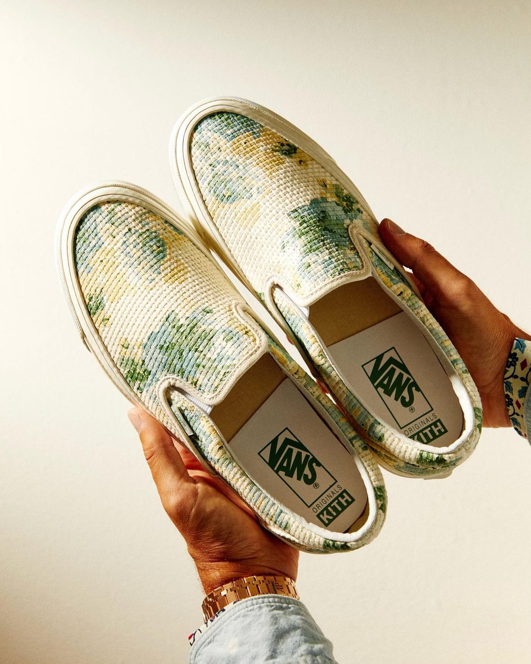 鞋身图案则加入 KITH 最为拿手也是最具人气的花卉及瓷砖印花,释放出明快的地中海风情。