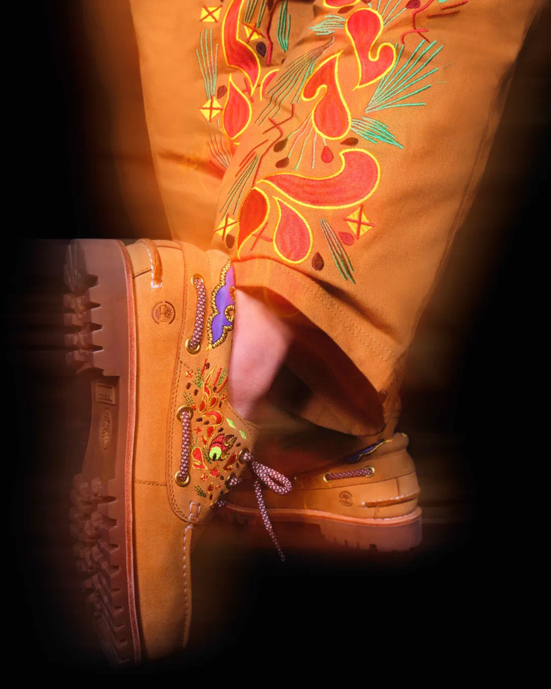 而具保护性的重型鸭帆布以 Timberland 标志性小麦色示人,搭配刺绣图案点缀丰富细节。