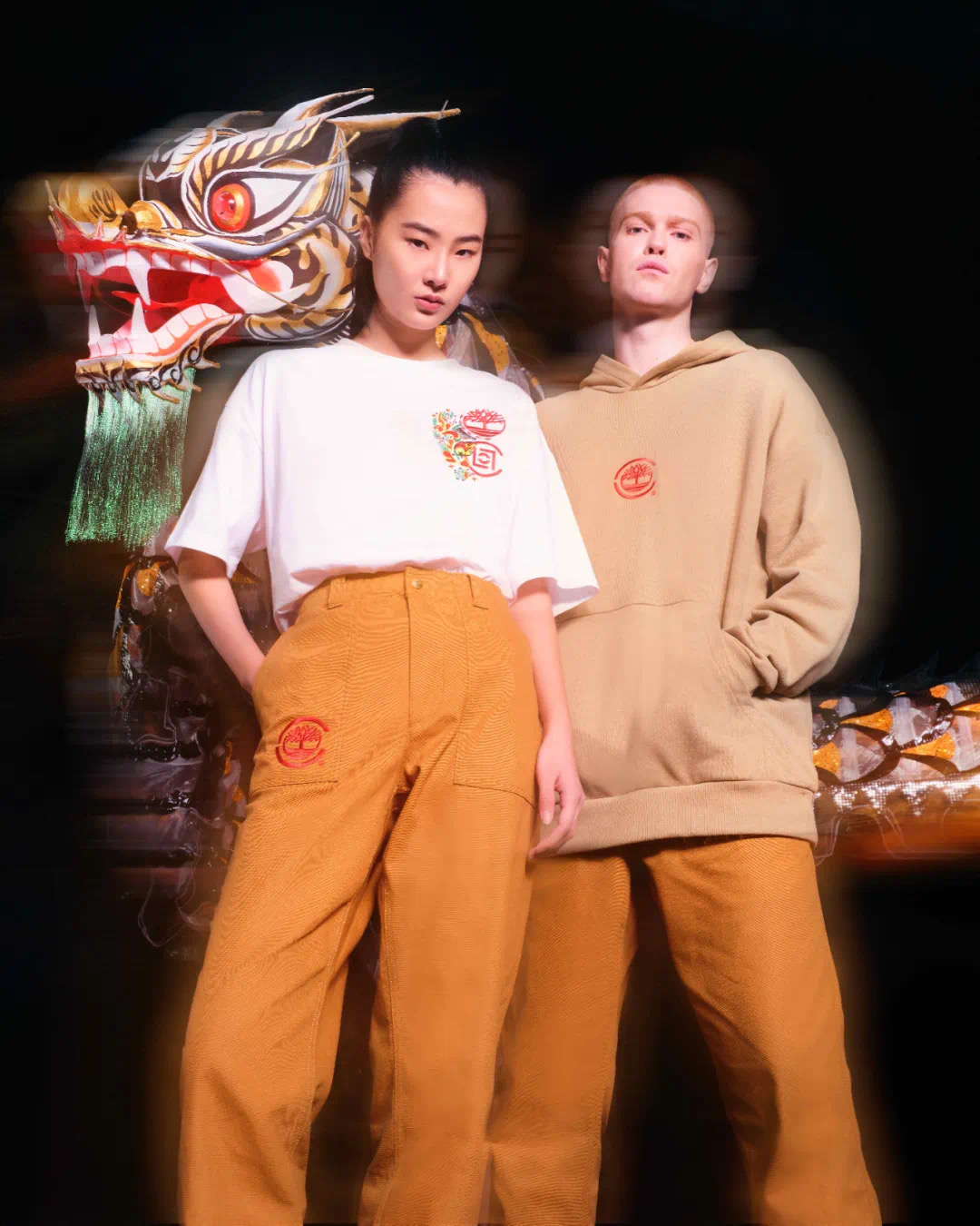 为更传神地表达龙的传人一脉相承的团结精神,品牌特意请来专业团体,身穿 Timberland x CLOT 系列以舞龙表演拍摄了一辑宣传片。