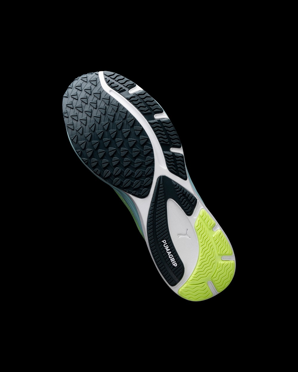 延续了 PUMAGRIP 防滑橡胶外底材质,重新排布的纹路呈现出钉鞋的造型,可以提供不同方向的抓地力,更能轻松驾驭湿滑路面。