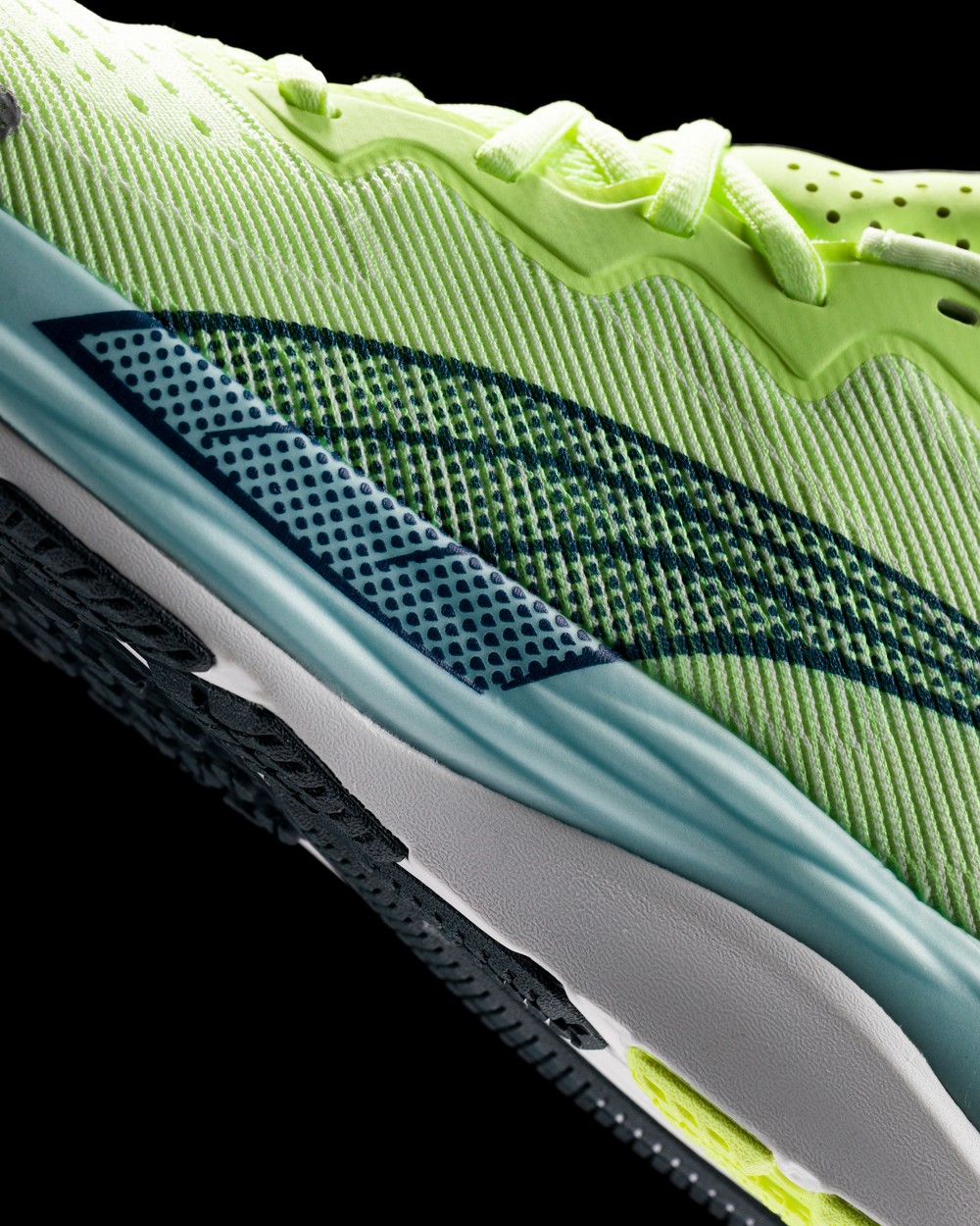鞋舌、鞋侧以及鞋跟点缀 3M 反光材质,每个角度都有醒目的辨识度,大大提高了夜跑玩家的安全性。