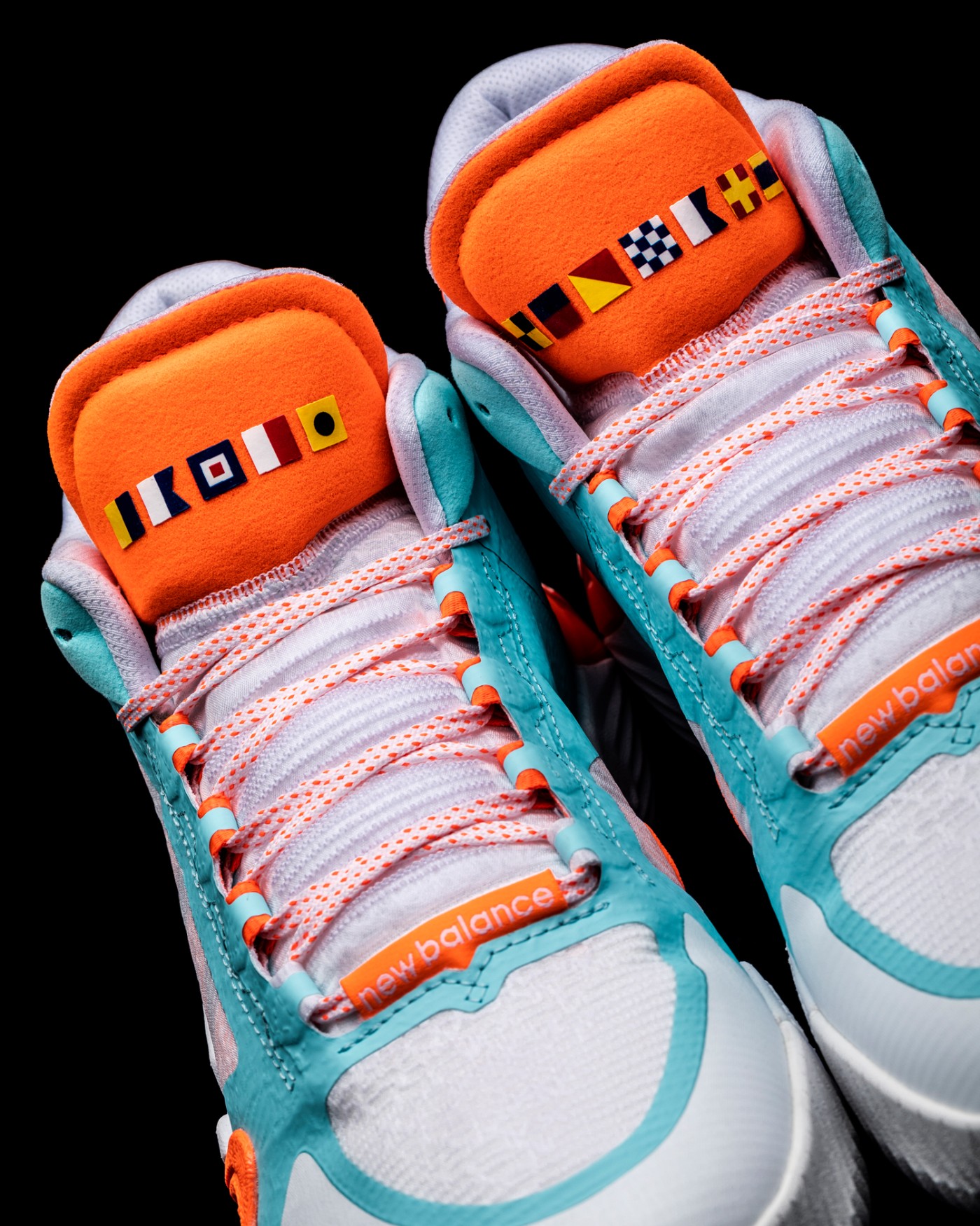 鞋舌的设计值得玩味,是以国际海事信号旗组成了 Kawhi Leonard 的名字。