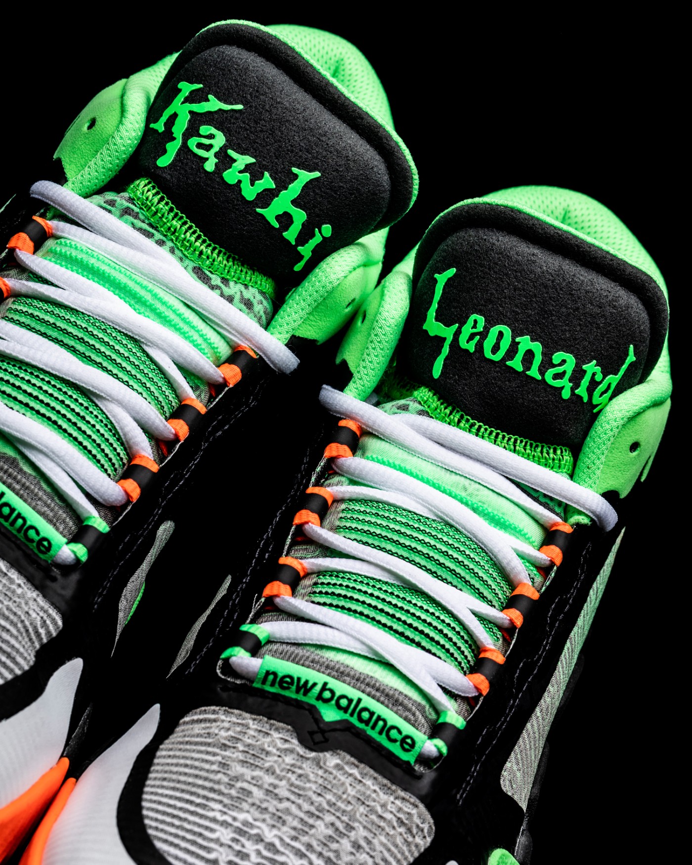 鞋舌以绿色毒液造型字体呈现 Kawhi Leonard 字样。