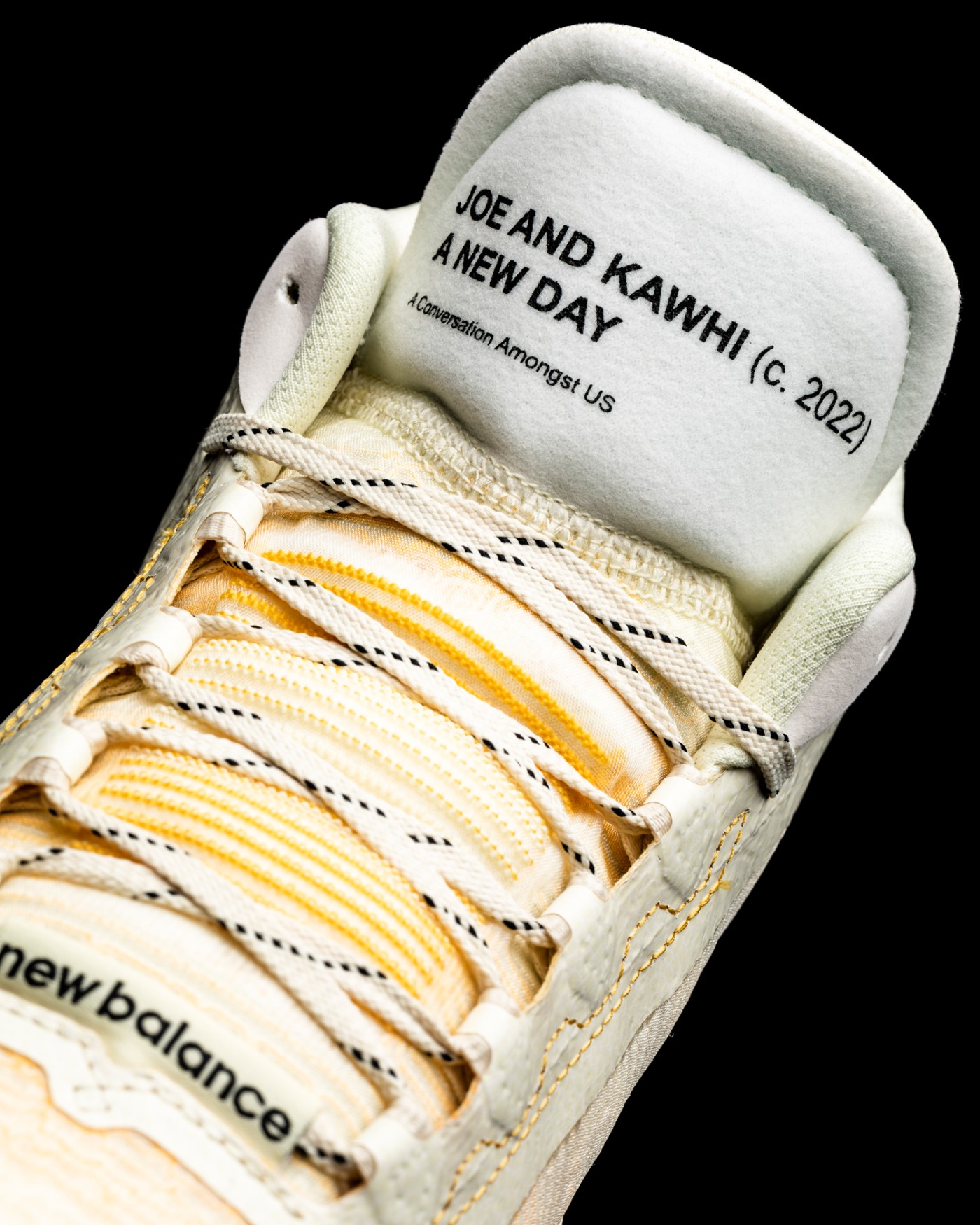 鞋舌印有 「JOE AND KAWHI」字样,表明联名身份。