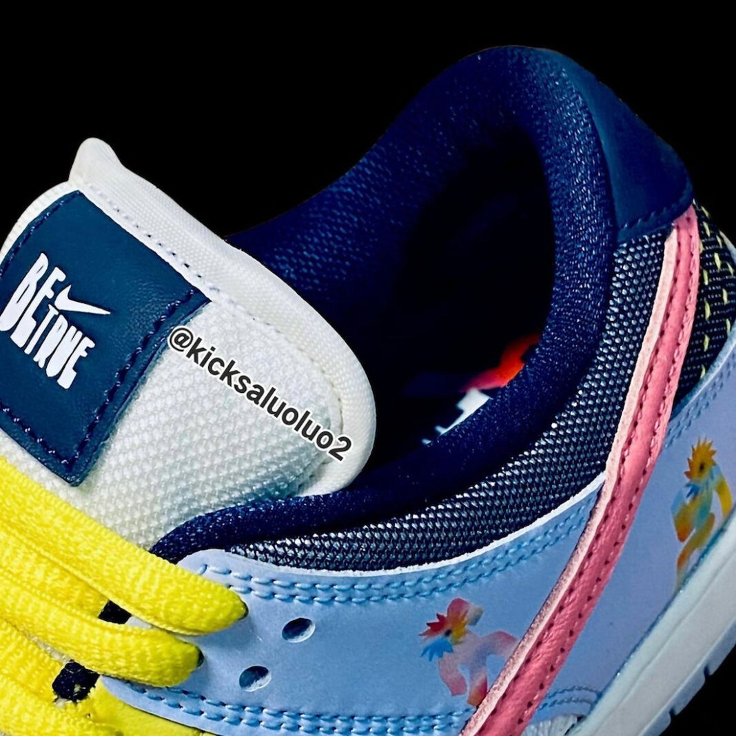 整双鞋设计元素相当丰富,鞋身点缀的彩色人物以及鞋舌 Be True 字样,呼应鞋款主题。