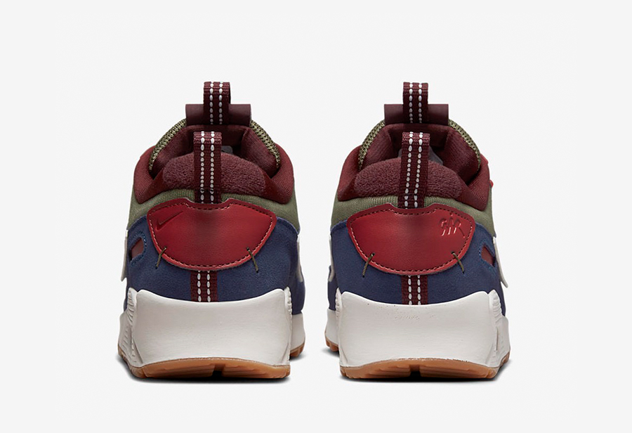 在 Air Max 90 经典鞋型中融入解构设计,采用藏蓝色作为主调,辅以暗红色、橄榄绿,整体配色呈现出户外氛围,给人以全新视觉感受。