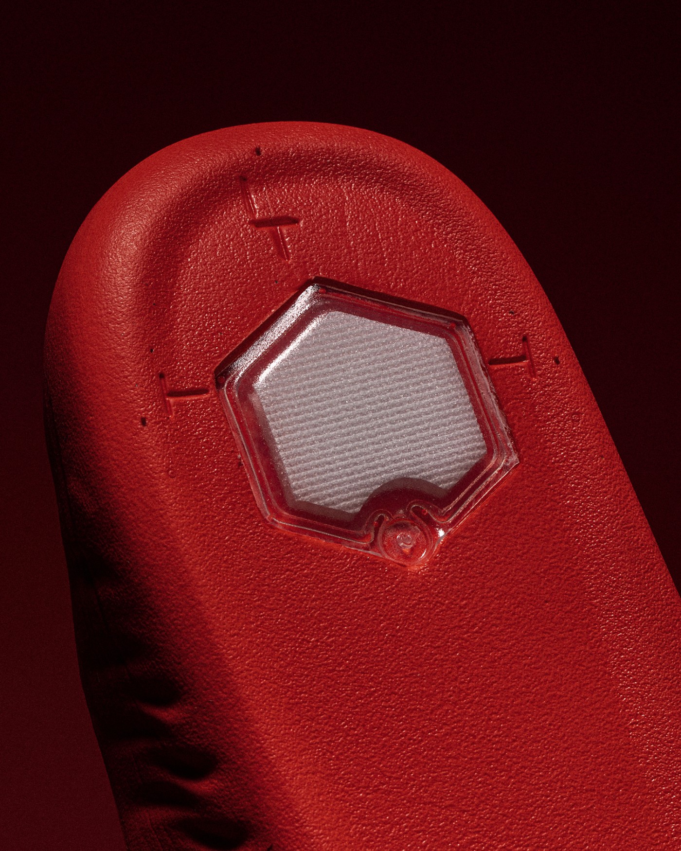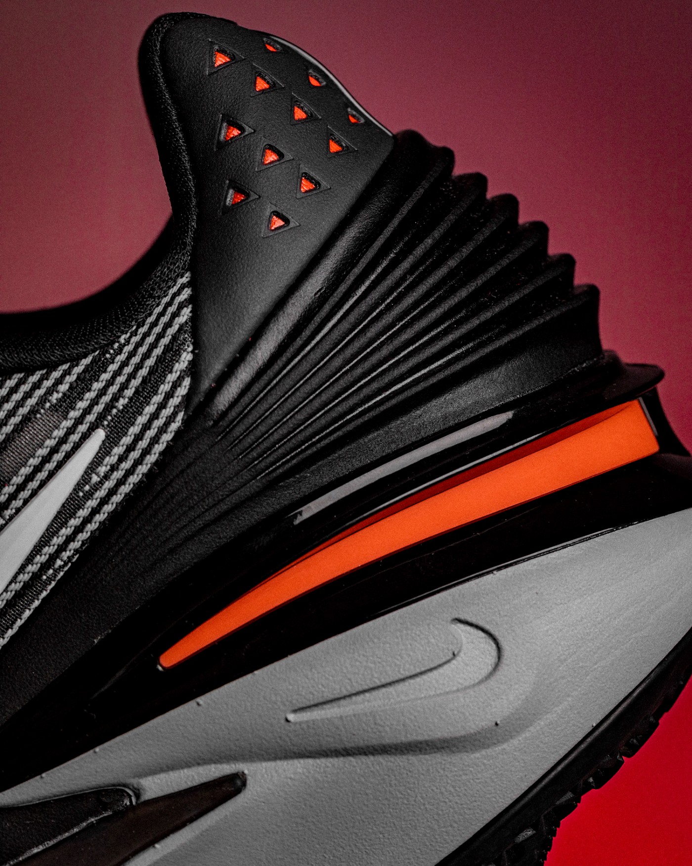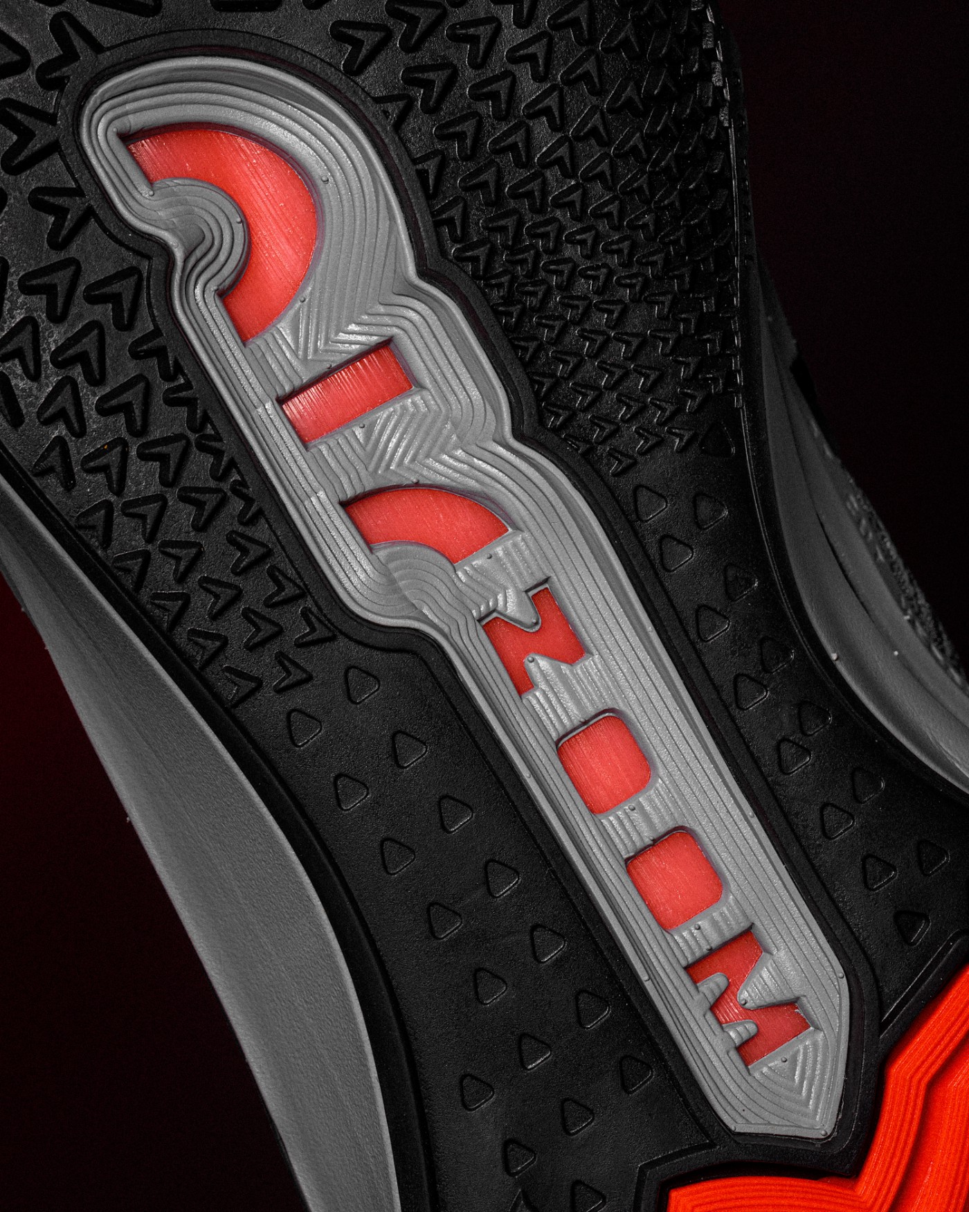 外底前掌核心的蹬地发力区域,采用夸张的人字纹构建。