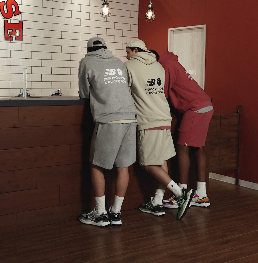 去年,在街头翻红的 New Balance 与 BAPE 展开了联名合作。