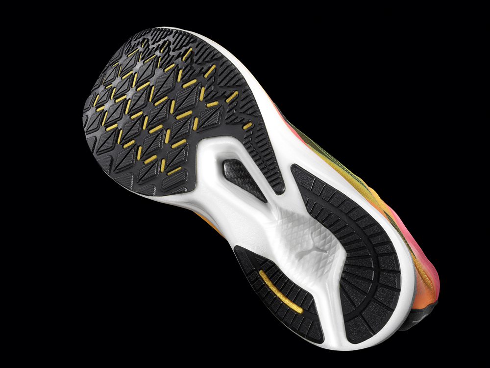 作为顶级竞速跑鞋,中底的全掌 INNOPLATE 推进板以 100% 碳纤维打造,将落地的冲击力最大限度地转化为推进力,减少跑动中的能量损耗。