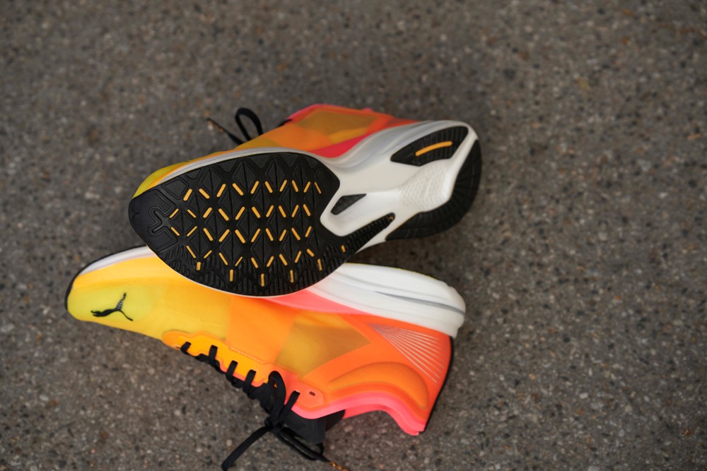 除了超轻 MONO 纱鞋面、PUMAGRIP LT 超轻橡胶大底,看家的 NITRO ELITE 中底材料相比普通 NITRO 氮气中底也更轻更弹,共同实现了极致的轻量化。