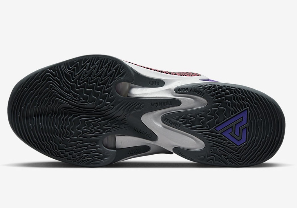 侧面 Swoosh 采用系列一贯的 “倒钩” 设计,上面还印有字母哥相关的语录。
