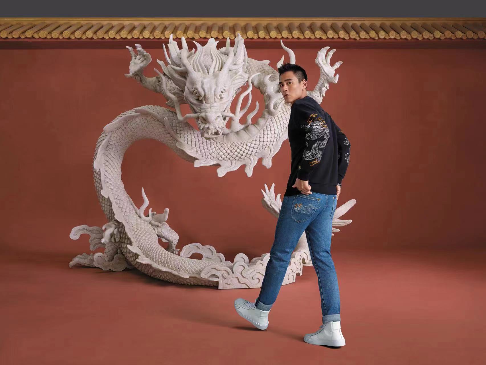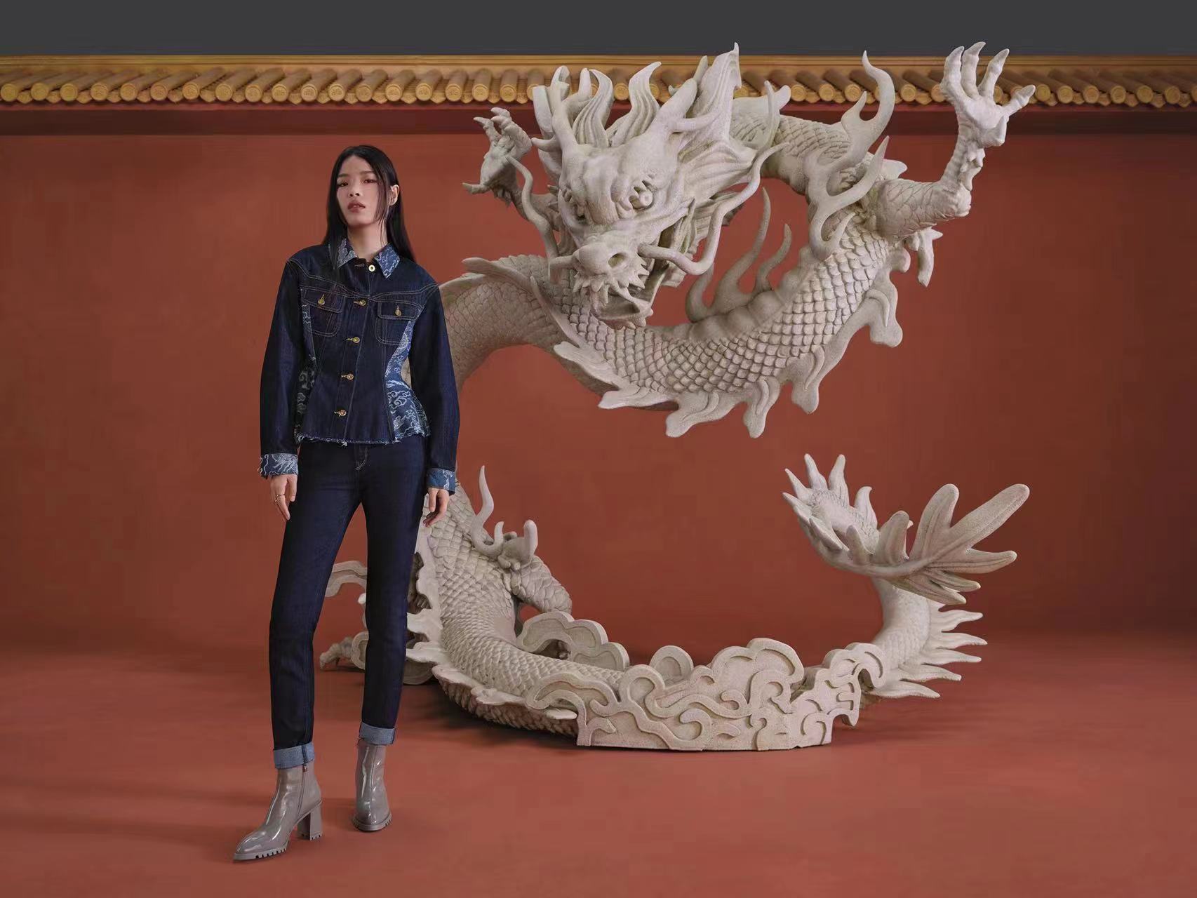 不同于上次的仙鹤主题,此次系列服饰从中国传统文化中的瑞兽——龙中汲取灵感,带来让人耳目一新的全新设计。