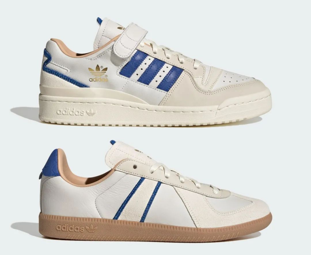 与蓝标贝壳头同属「蓝标三兄弟」系列的,还有两双全新蓝标 Forum 和蓝标德训鞋,均采用奢华设计风格。