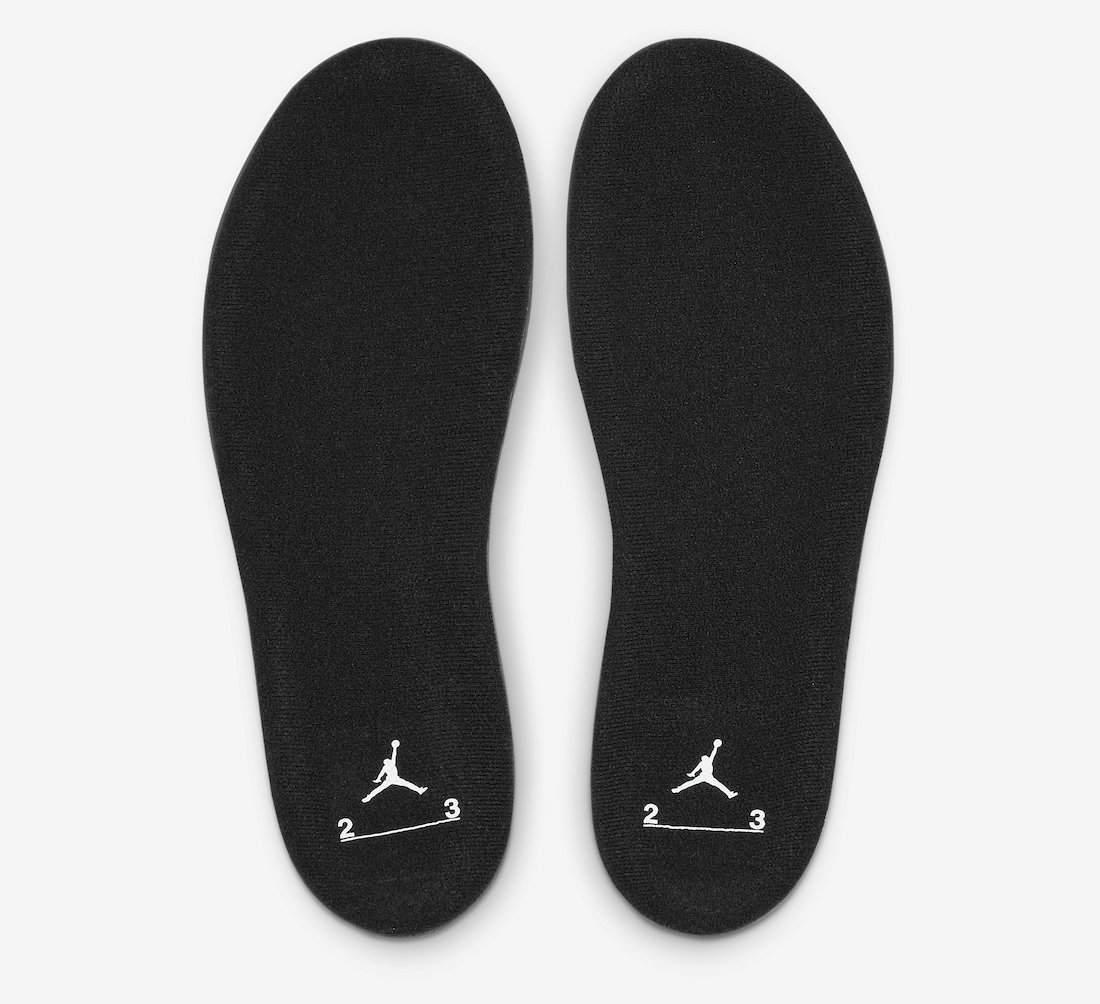鞋身内侧、后跟提环、外底和鞋垫上的 Jumpman Logo 和 23 字样彰显鞋款身份。
