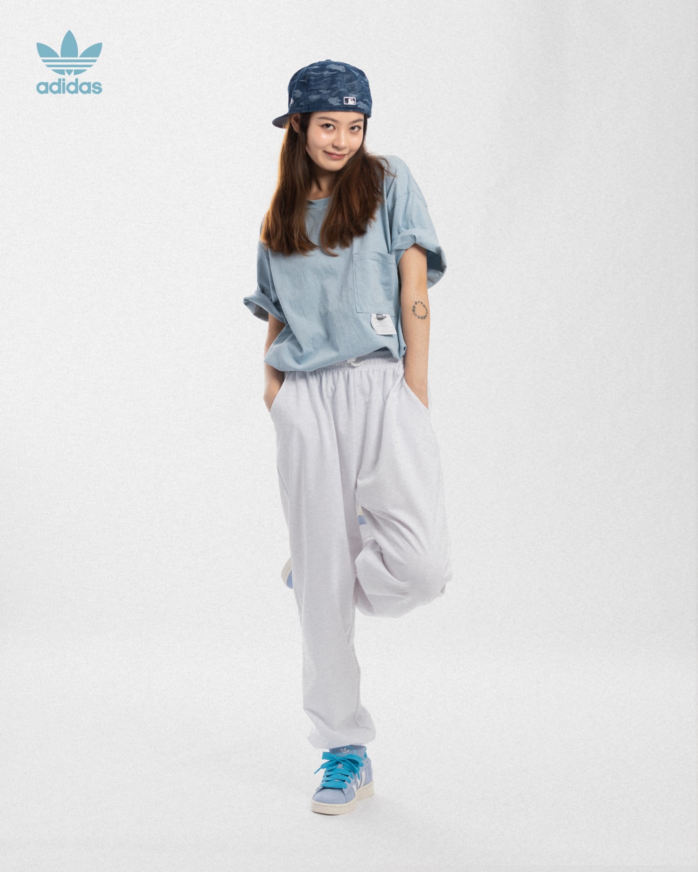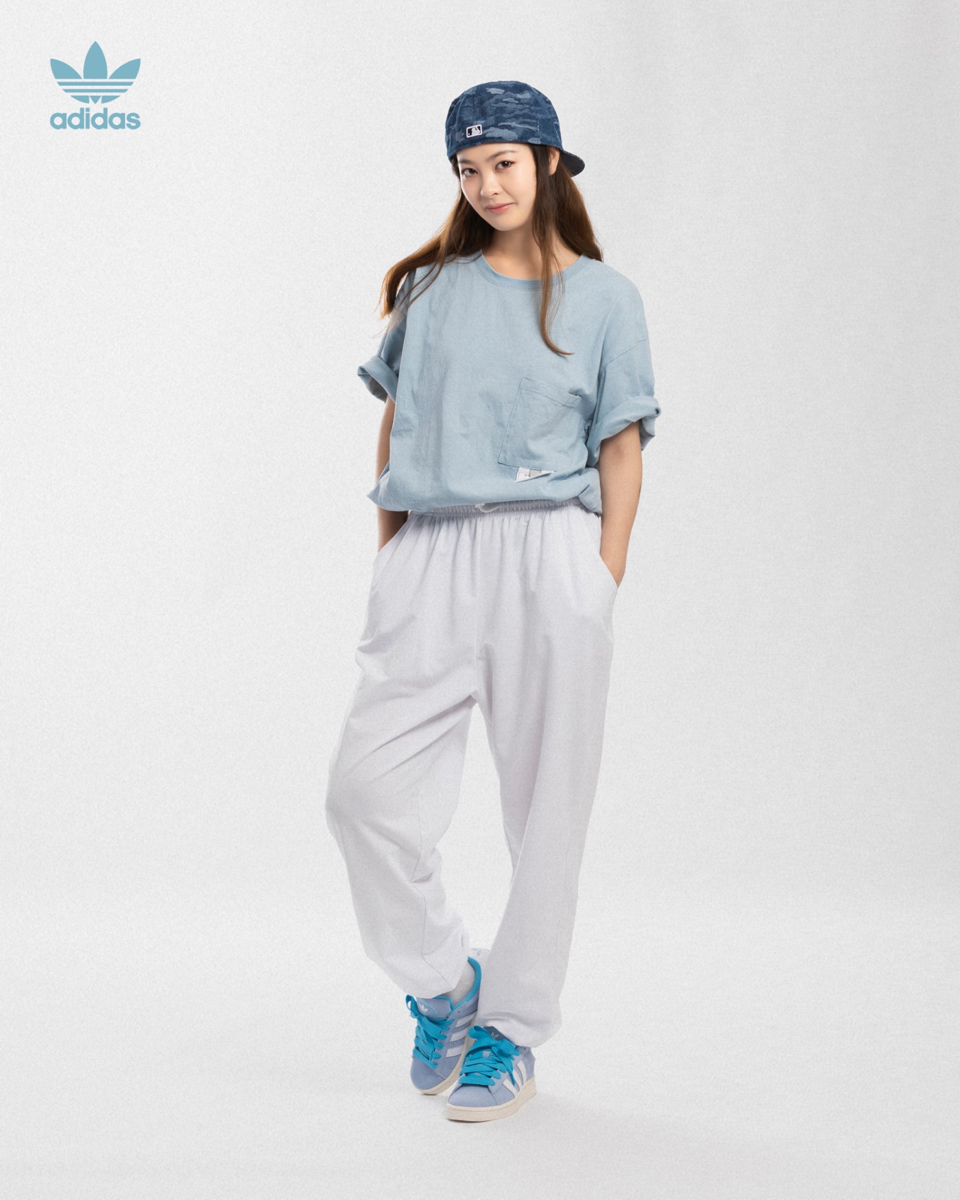 浅蓝色的可爱风格更适合女生,而灰色则更加帅气,更有复古街头韵味。