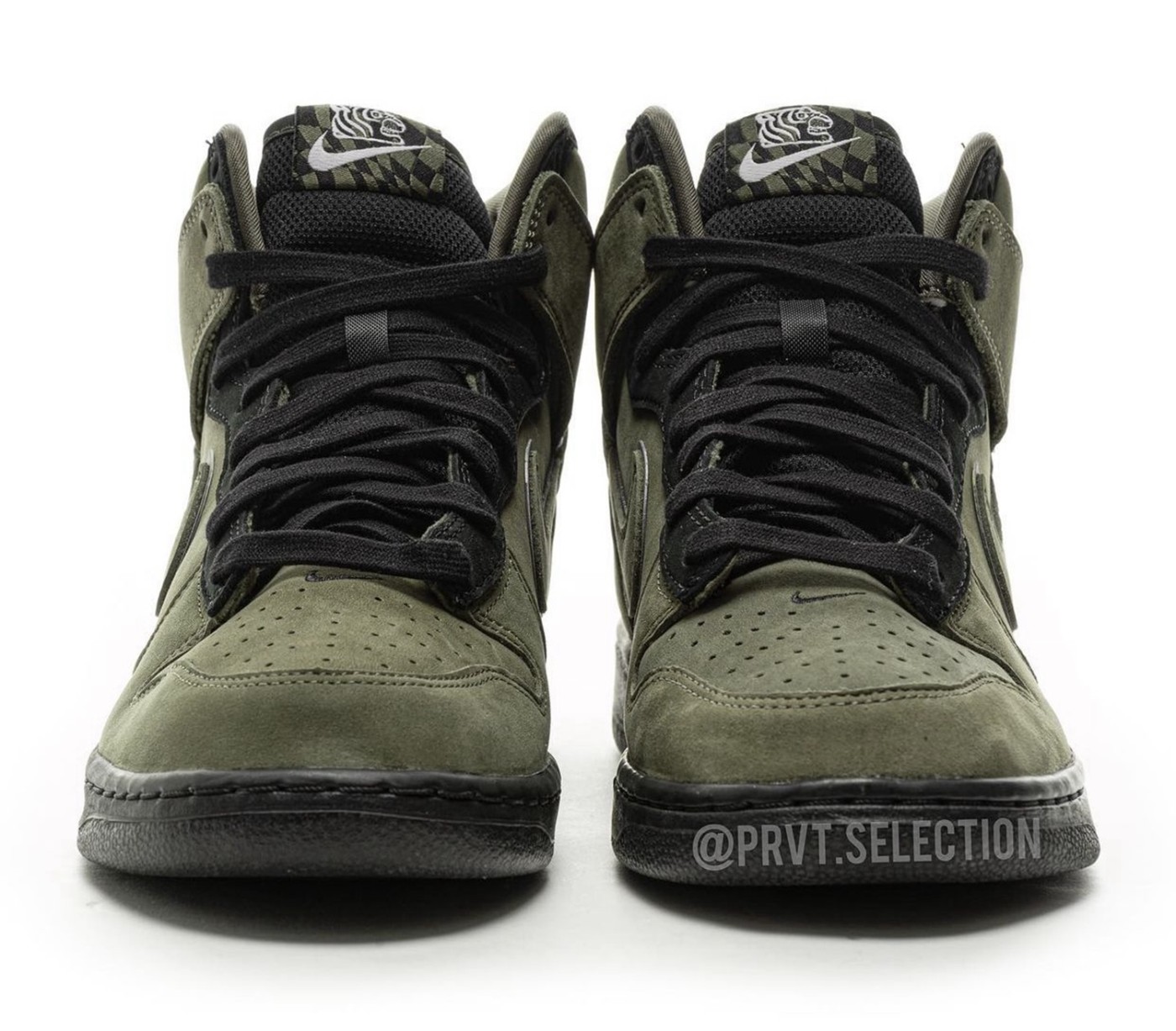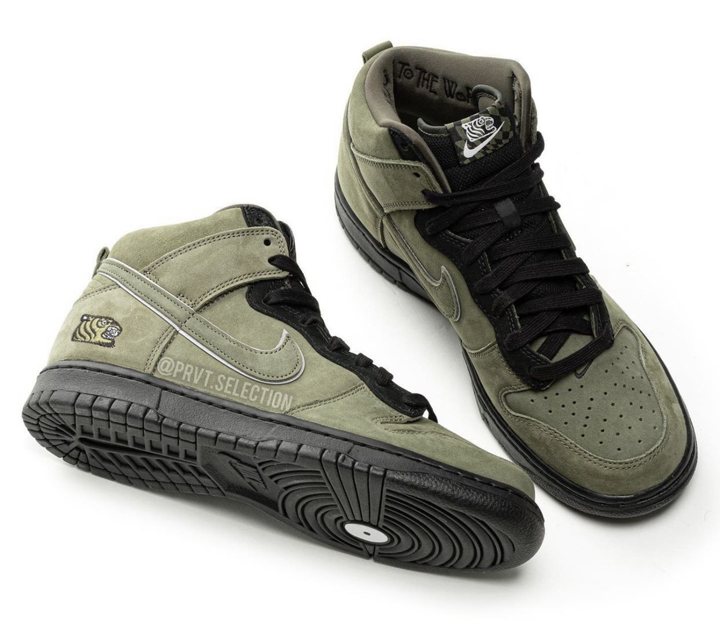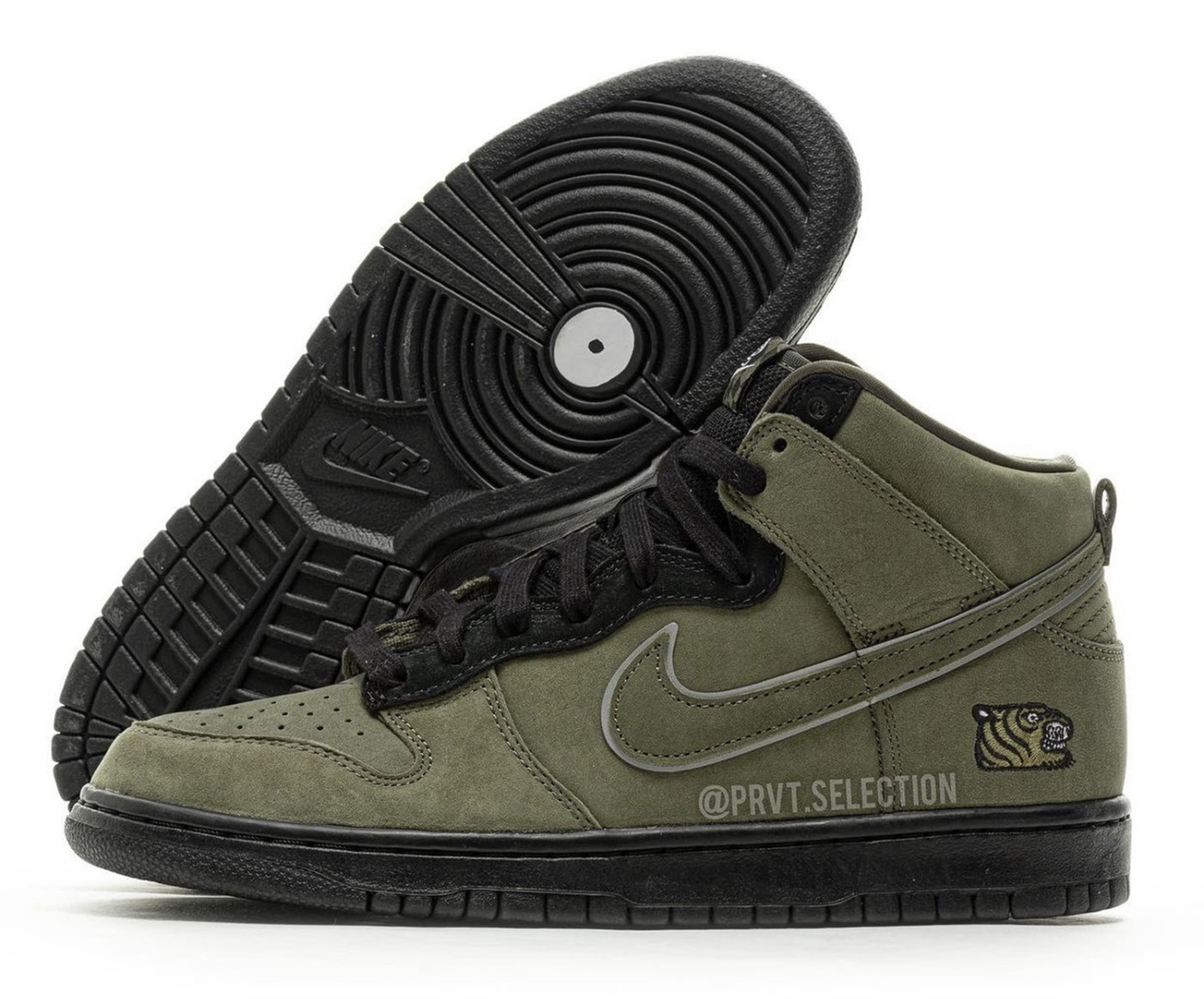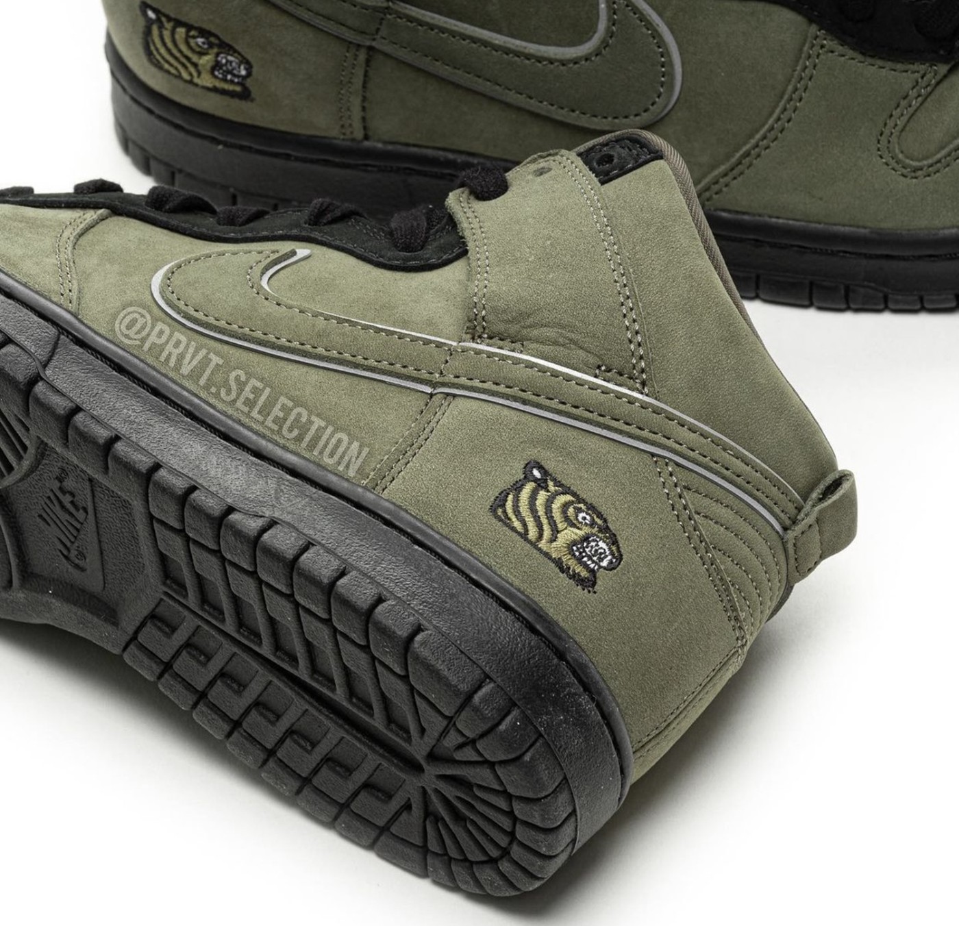 整个鞋面采用橄榄绿麂皮打造,质感不俗,鞋侧 Swoosh 辅以 3M 反光边缘勾勒。