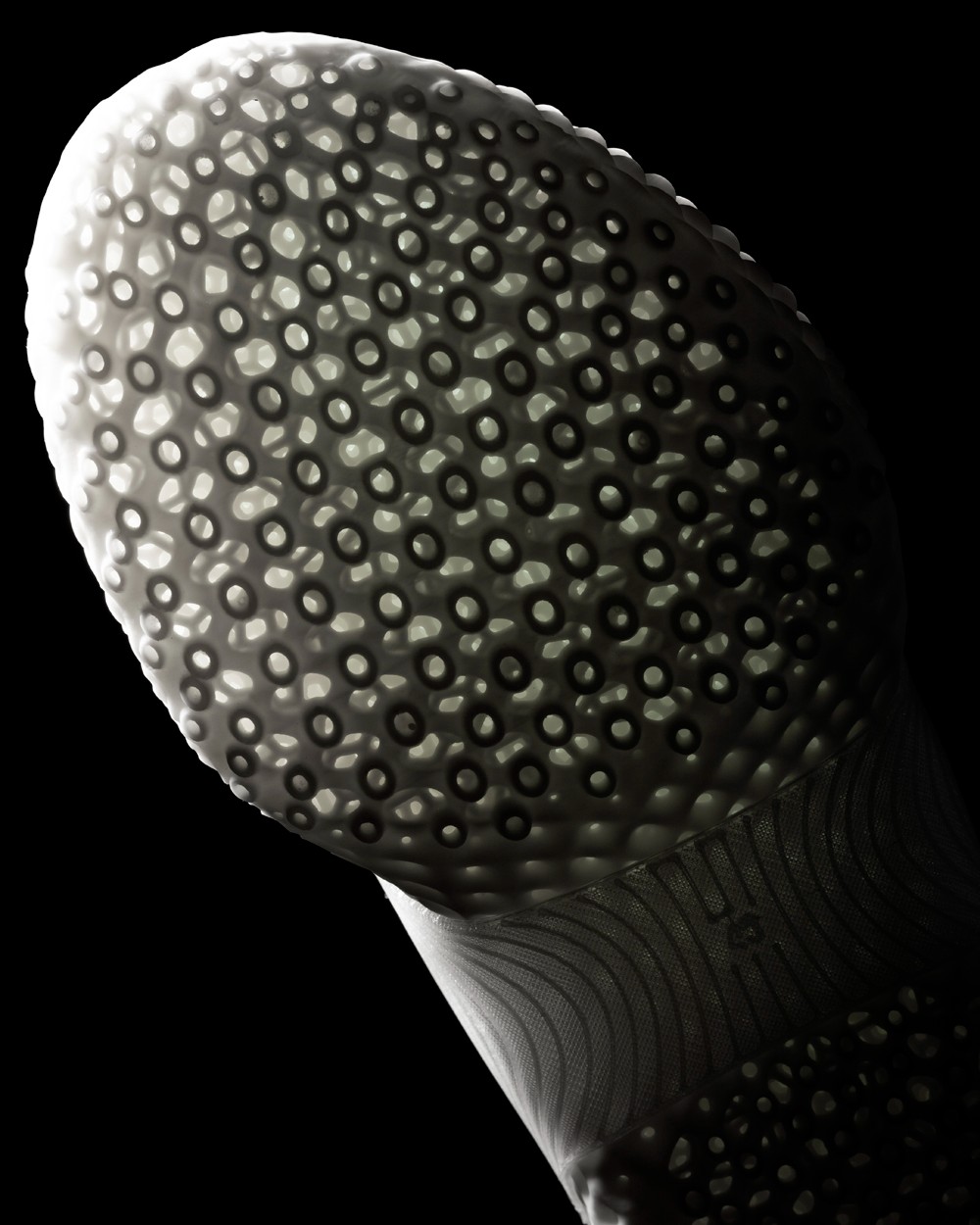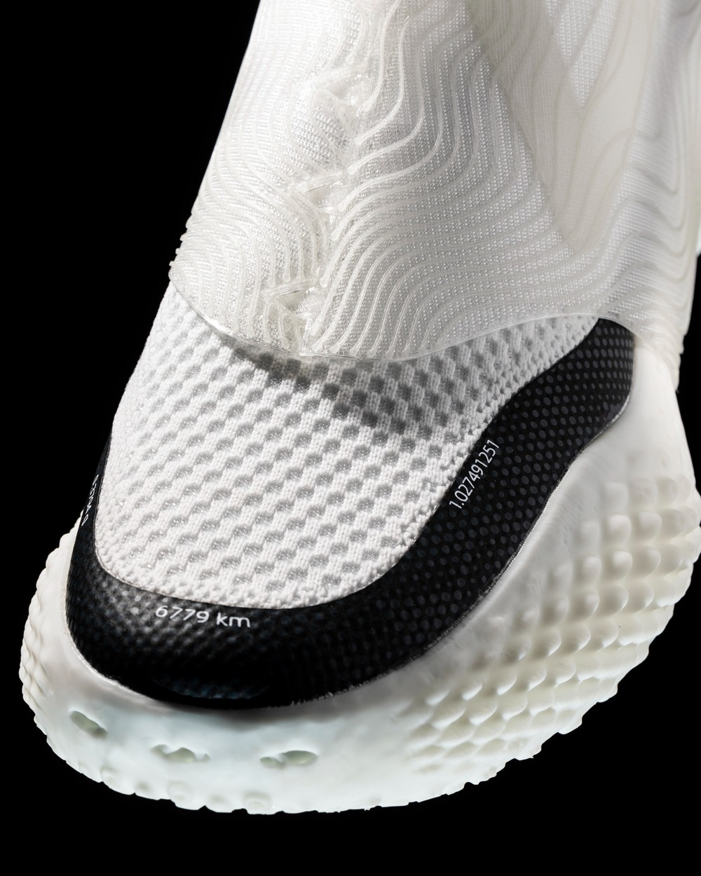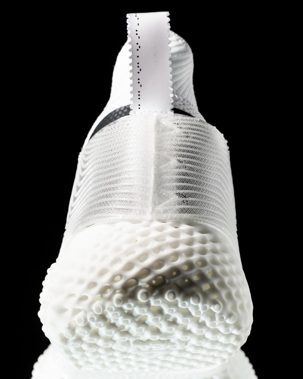 无论是鞋面还是鞋底均由 3D 打印科技制成,飞织面料打造的一体袜套式鞋面,降低了整双鞋重量的同时提高了透气性。