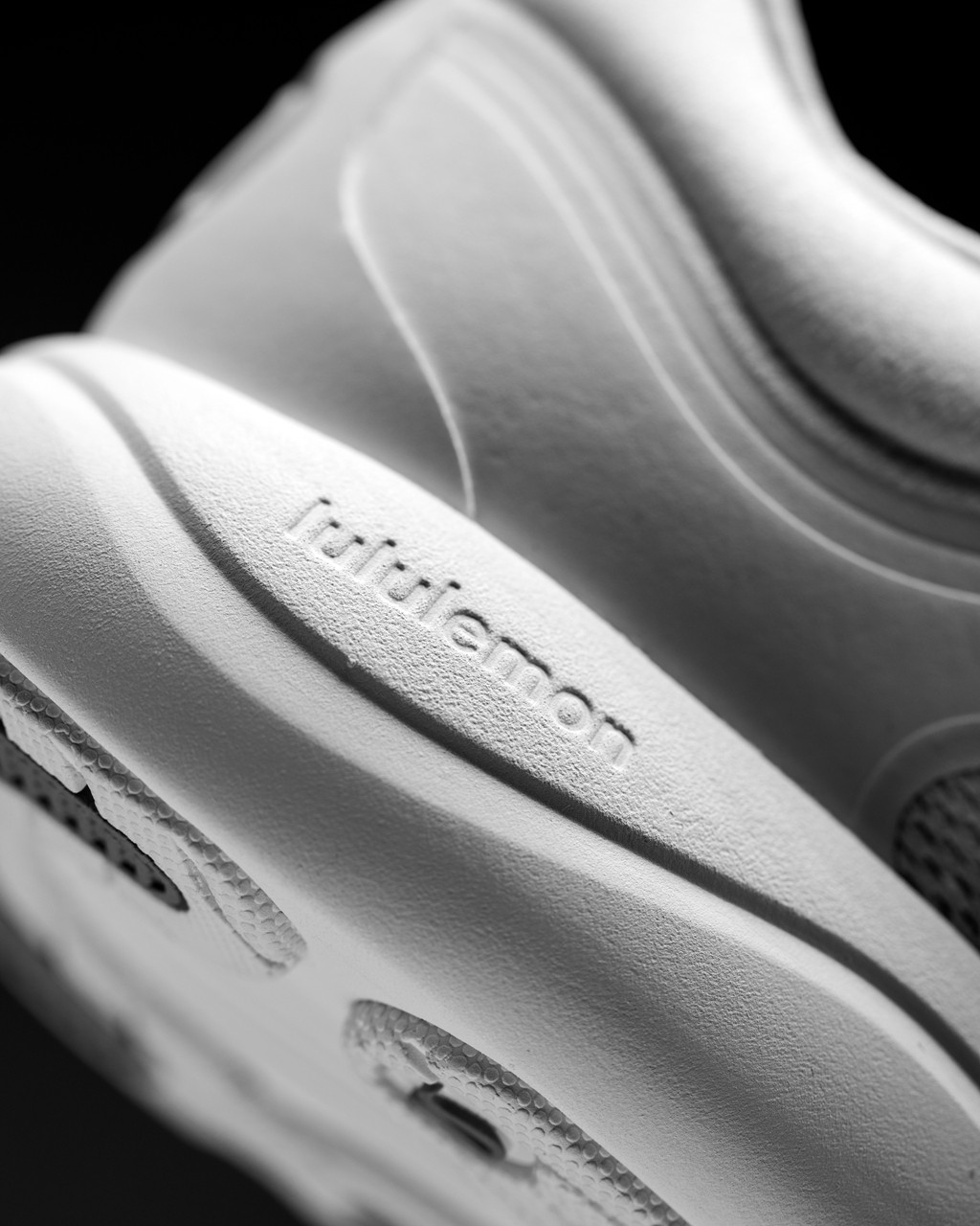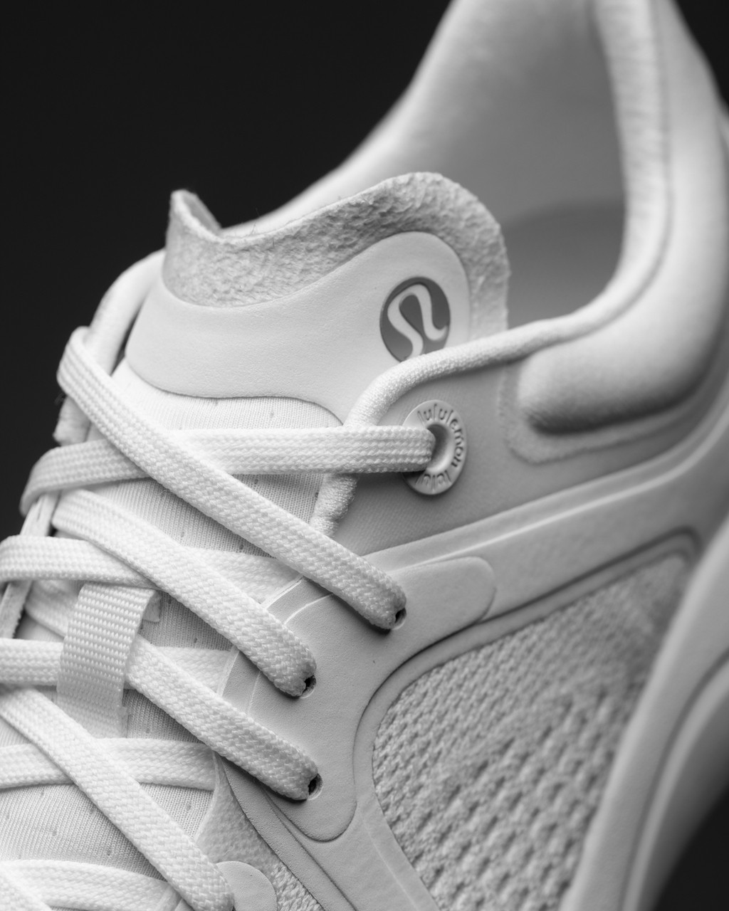 最上方精致的金属鞋带孔上印有 lululemon 字样,配合鞋舌、后跟上的品牌 Logo,彰显鞋款身份。