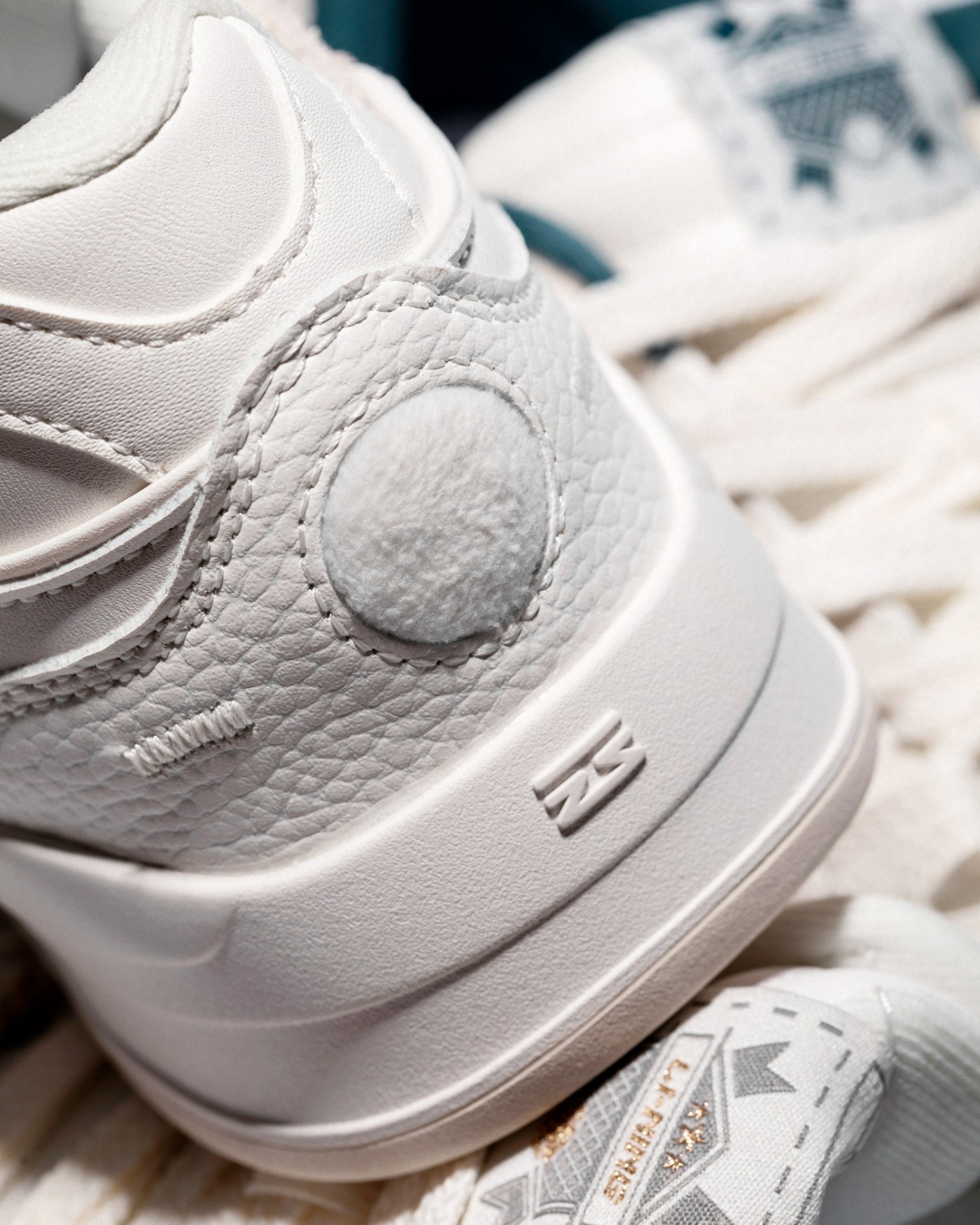 外侧鞋带孔部分并不是完整的车线,而是点缀刺绣加固,体现当下最火热的重组解构设计。