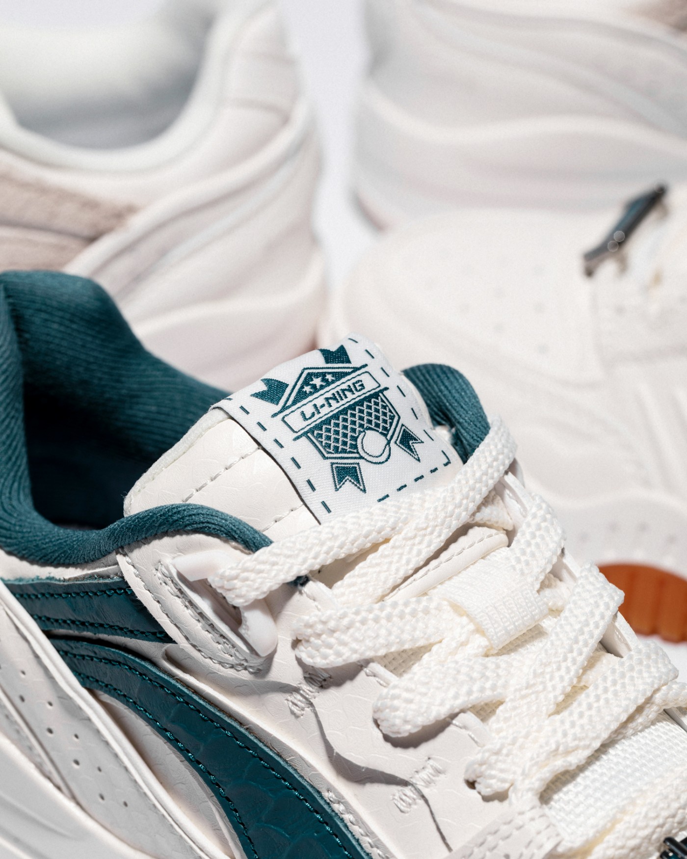 鞋头包边压印李宁 Logo 简约不失格调,鞋身大面积采用奢华感更突出的鳄鱼皮压纹,搭配丰富而流畅的线条,放大了整双鞋的层次。