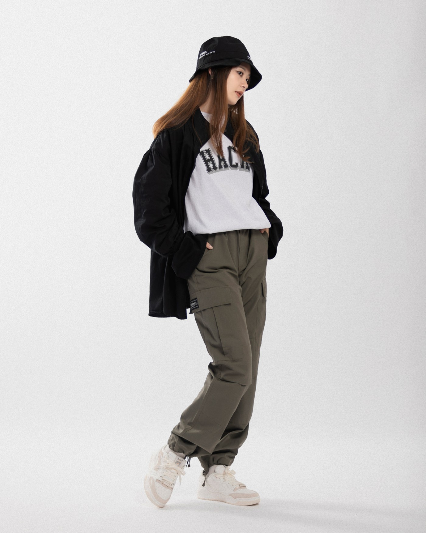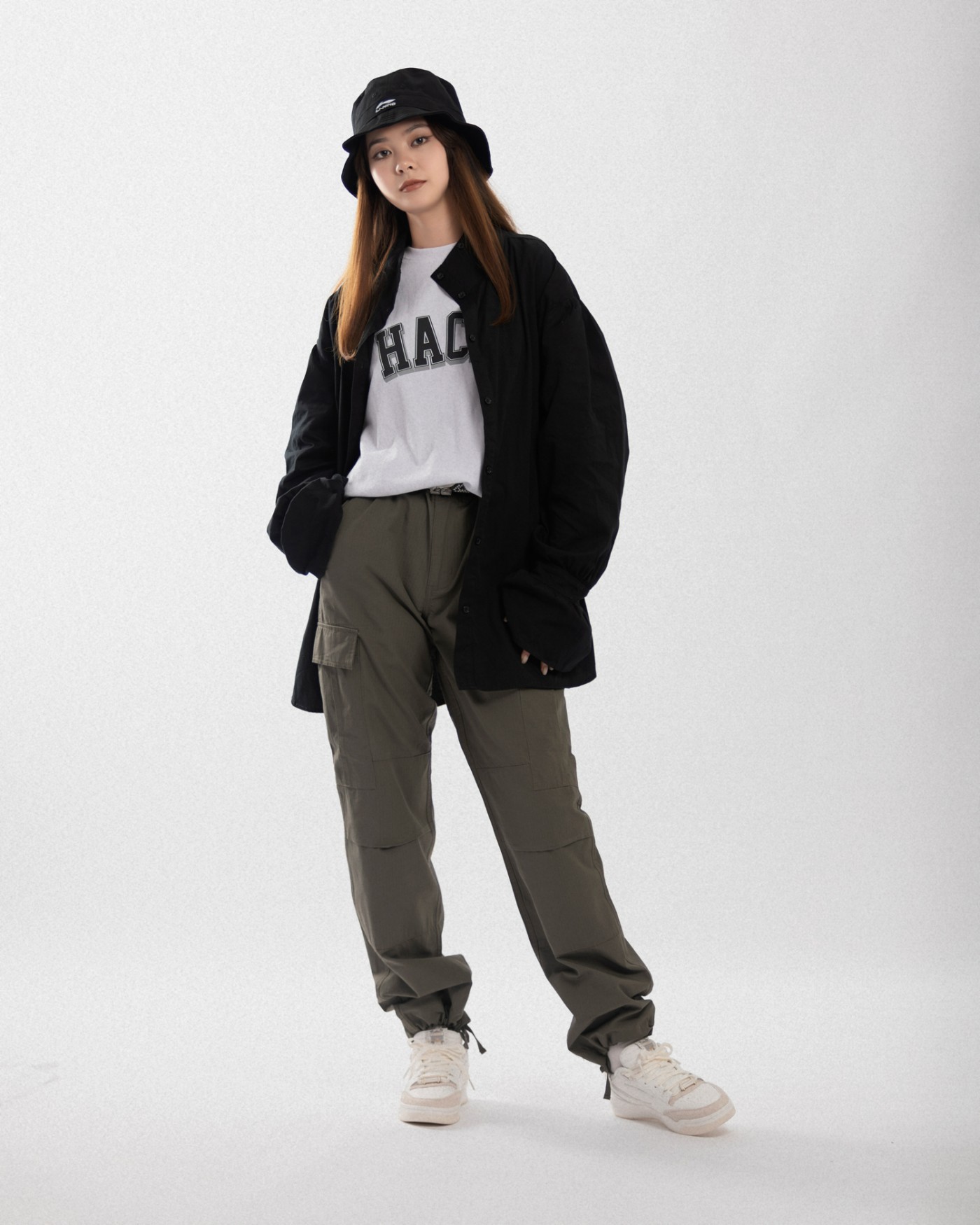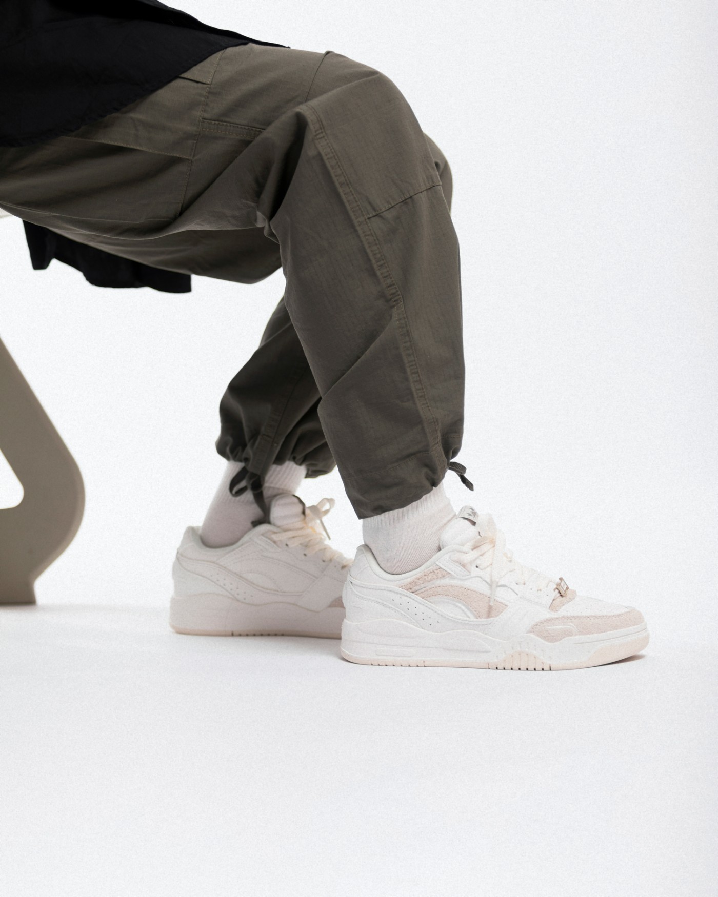 另一双小姐姐上脚的纯白色也十分容易搭配,一条工装裤就能穿出不错的街头感。